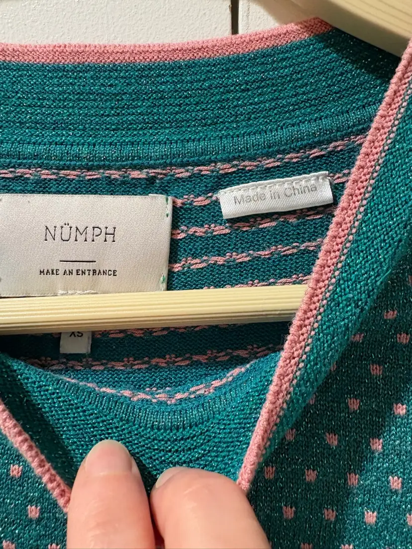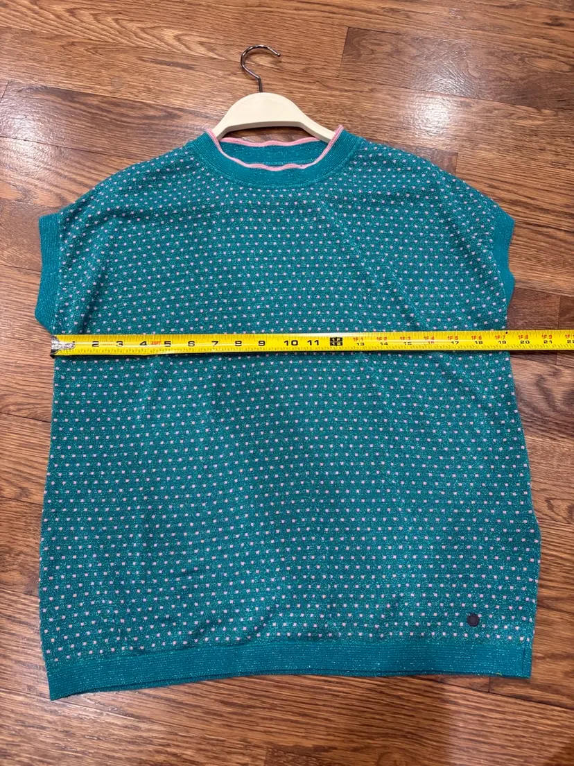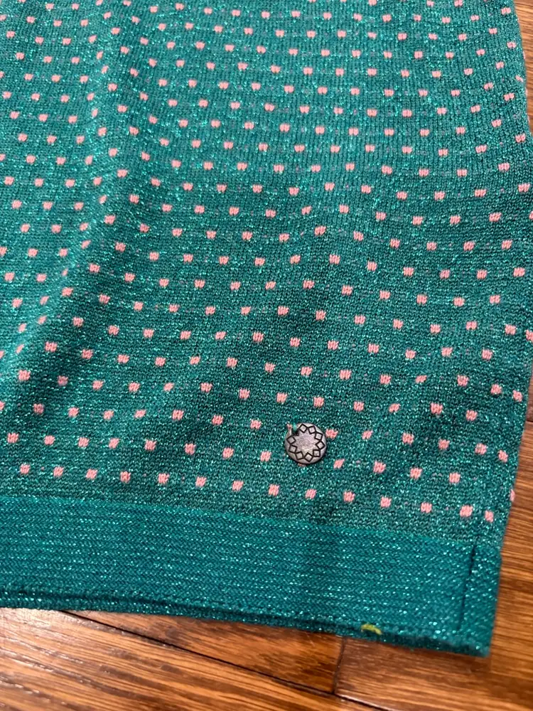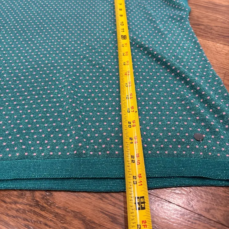 Anthropologie Numph Short Sleeve Top/Sweater Green / Metallic Pink Polka Dots XS