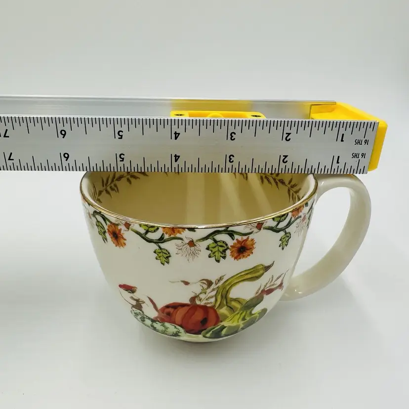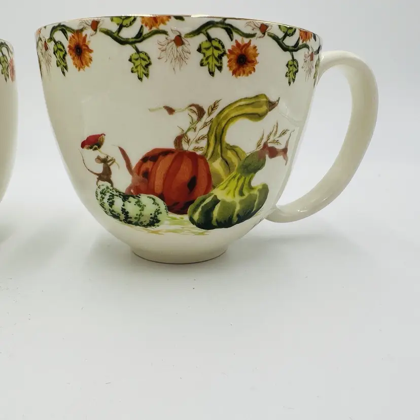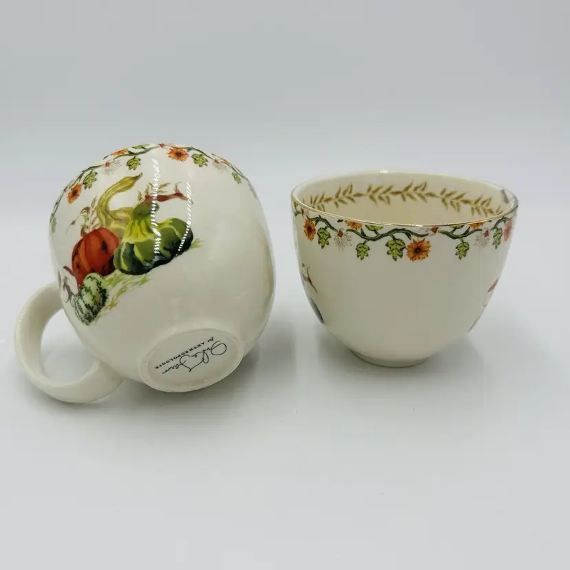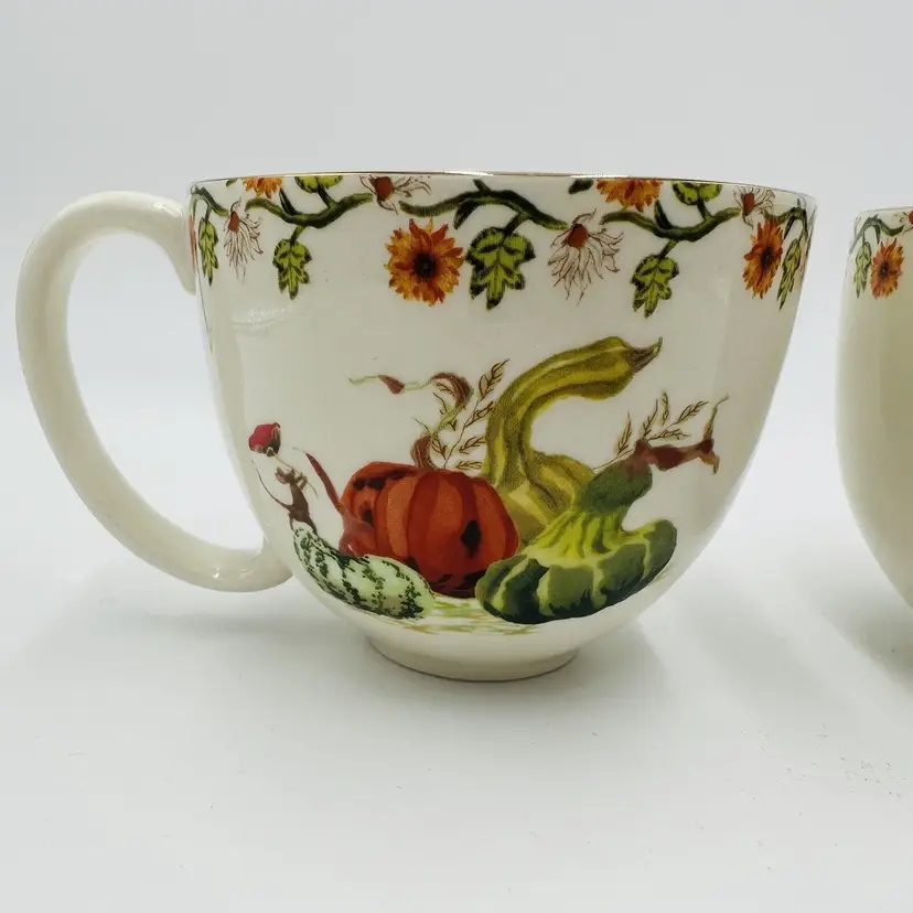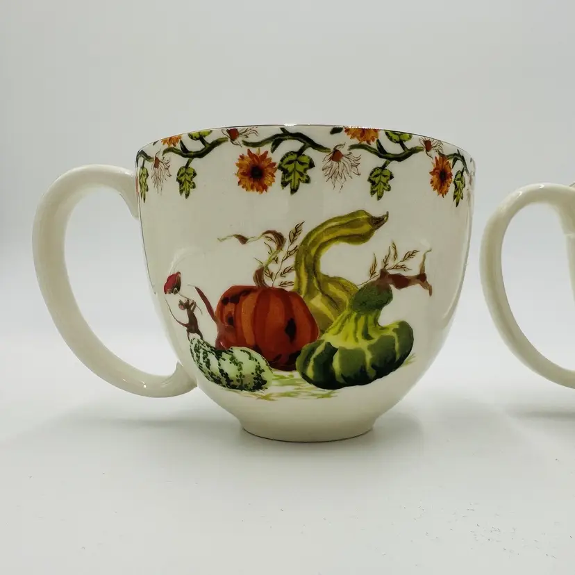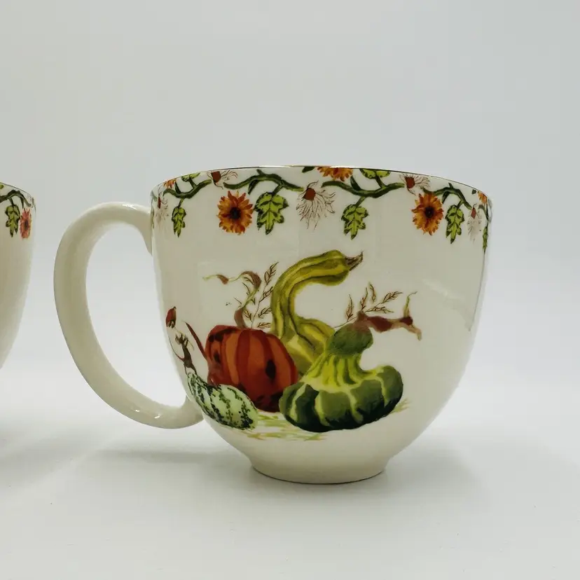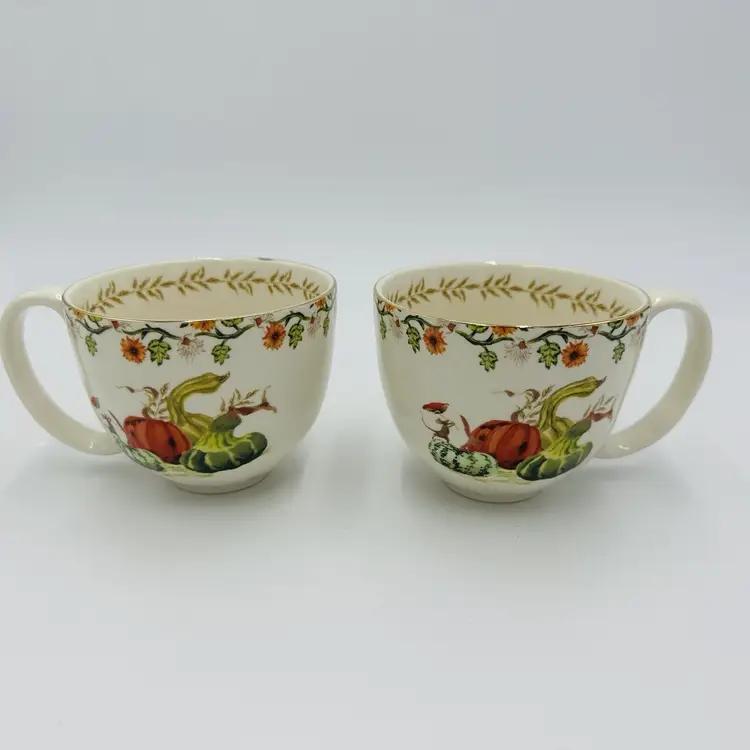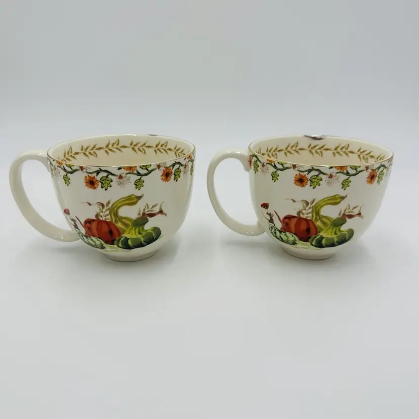 Features: Handle, Hand Wash Item Width: 4.5 in Pattern: Novelty Service For: 2 Item Height: 3.5 in Number of Items in Set: Two-Piece Occasion: Fall, Thanksgiving Country/Region of Manufacture: China Material: Ceramic Model: Autumn Bounty Coffee Mug Shape: Round Character: Garden Pumpkin Brand: Anthropologie Style: Contemporary Color: Multicolor Set Includes: Coffee Mug Theme: Floral, Thanksgiving, Fall, Pumpkin Capacity: 17 fl oz Type: Coffee Mug