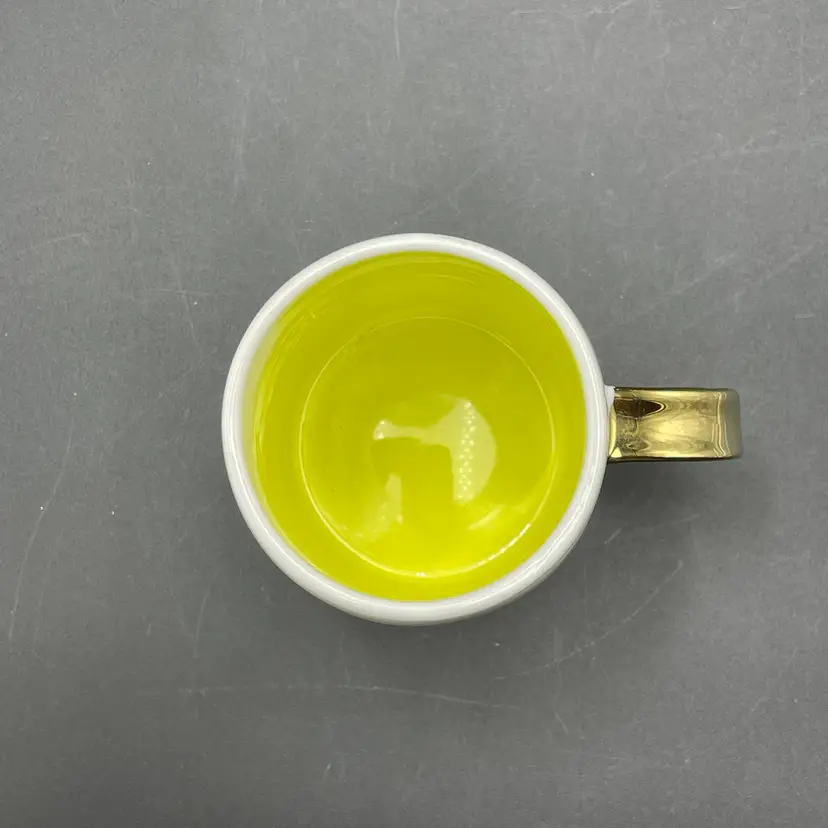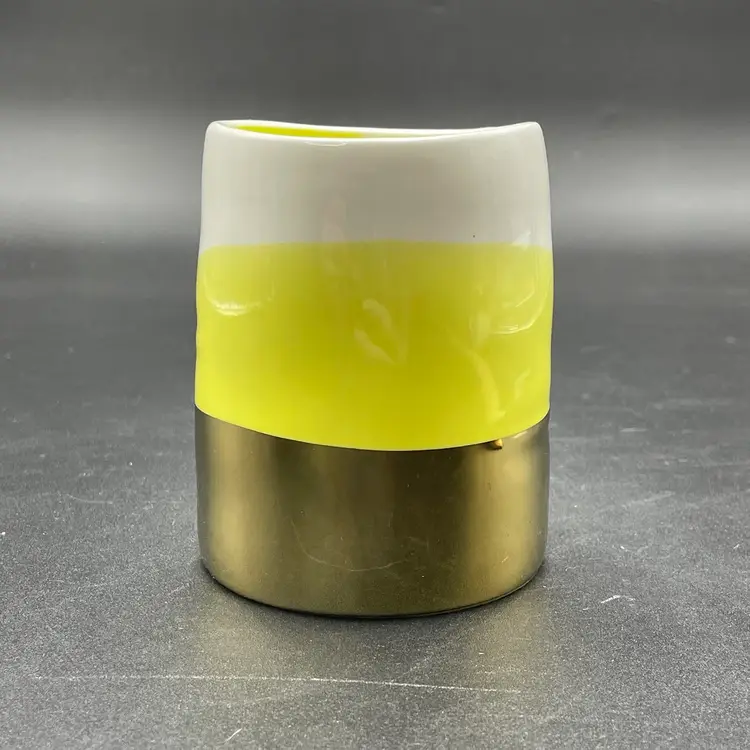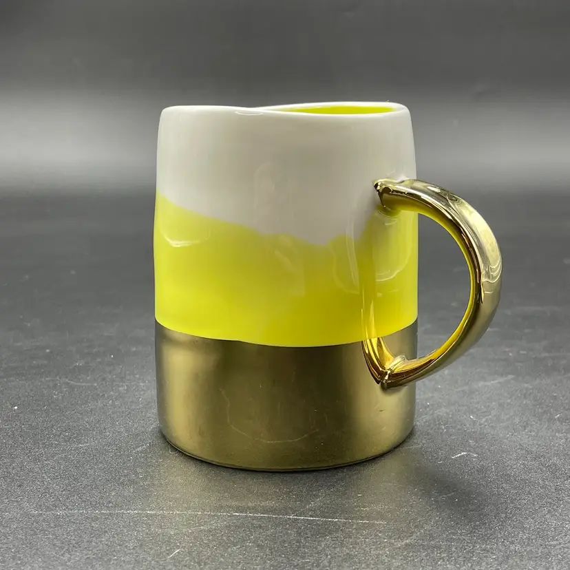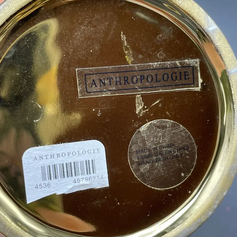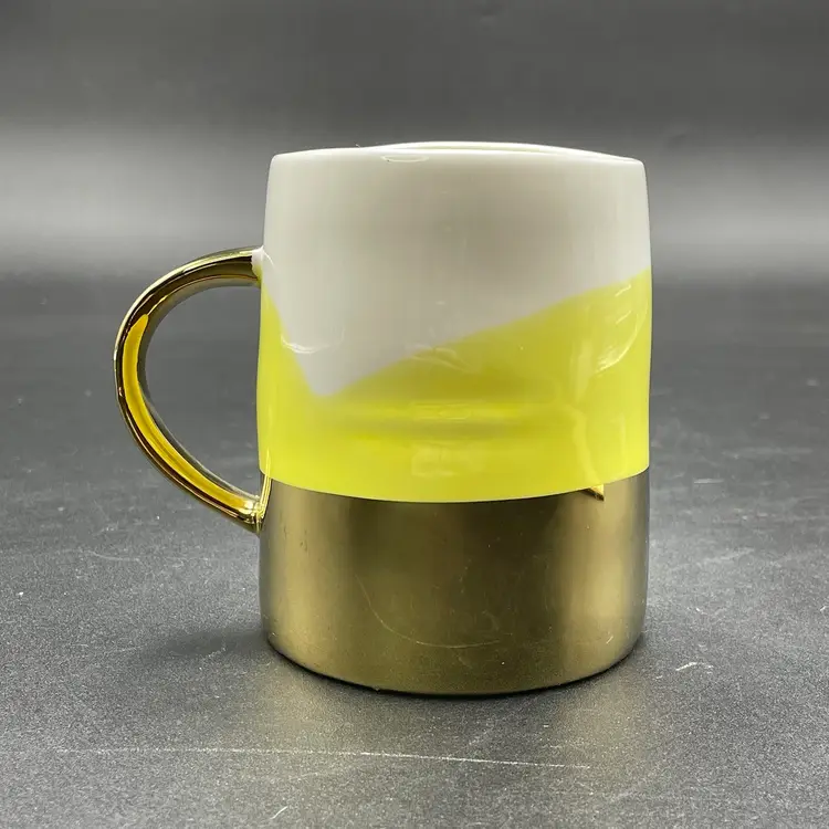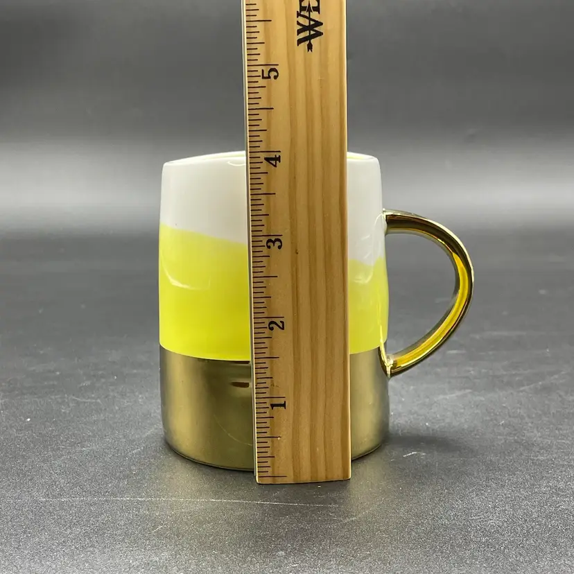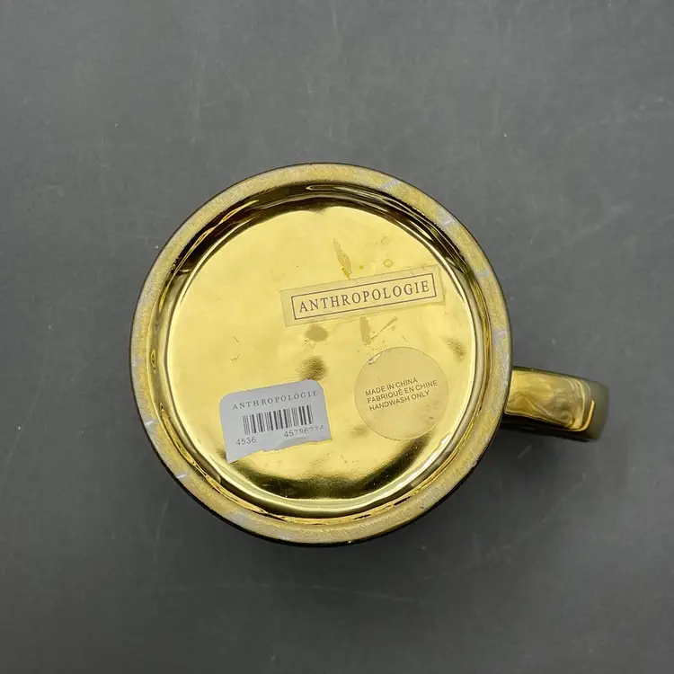 This is an Anthropologie Tamatoa hand painted gold, yellow and white coffee mug with its original label. Measures approximately 4" tall x 2.5" across the top, and holds approximately 12fl oz. Handwash only! No major flaws.