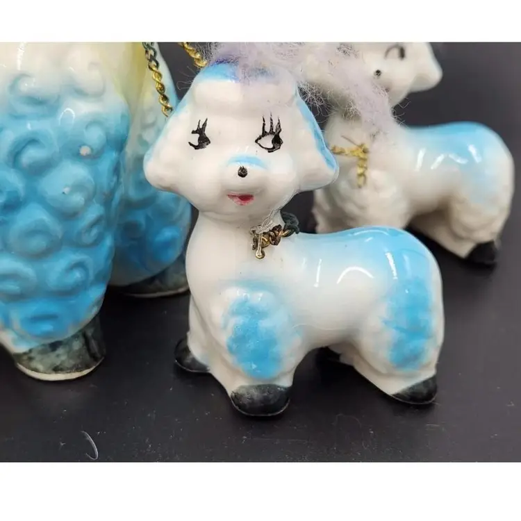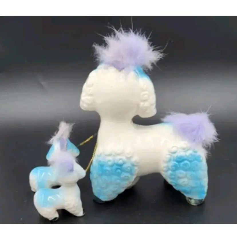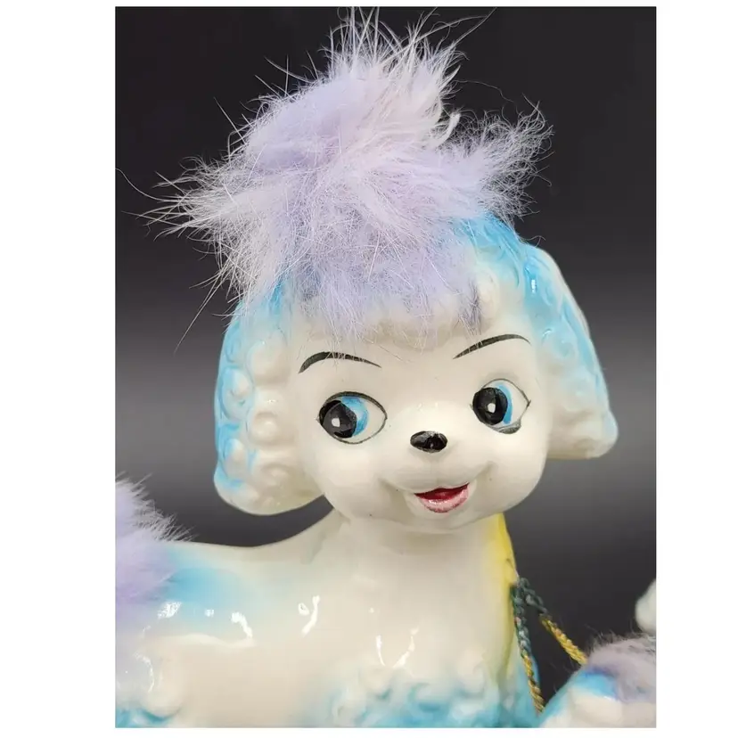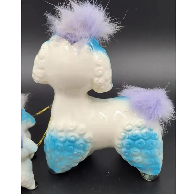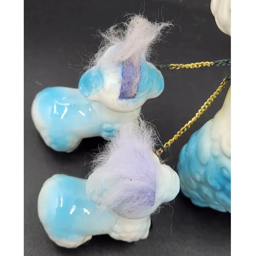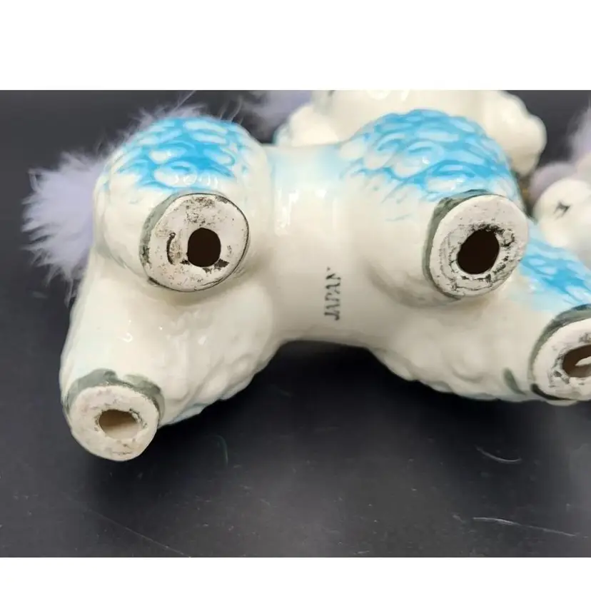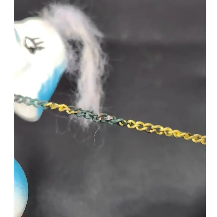 The fur on the puppies is sparse. There is a black spot on the chain. Small chip on the bottom of the one puppies paw. Mommy is 6" Tall by 5" long