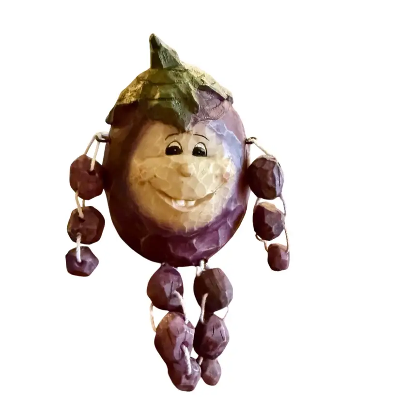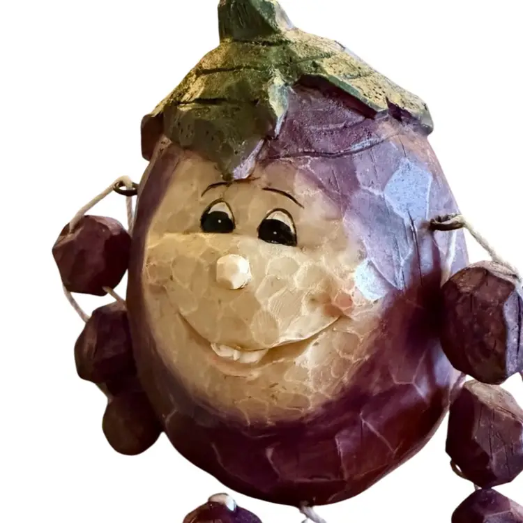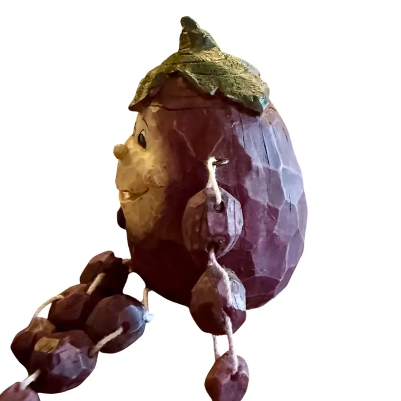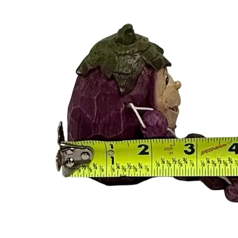 Anthropomorphic Purple Eggplant Vegetable Resin Figurine Shelf Sitter 1980's 4” T (sitting) x 3-1/2” L x 2-1/2” W