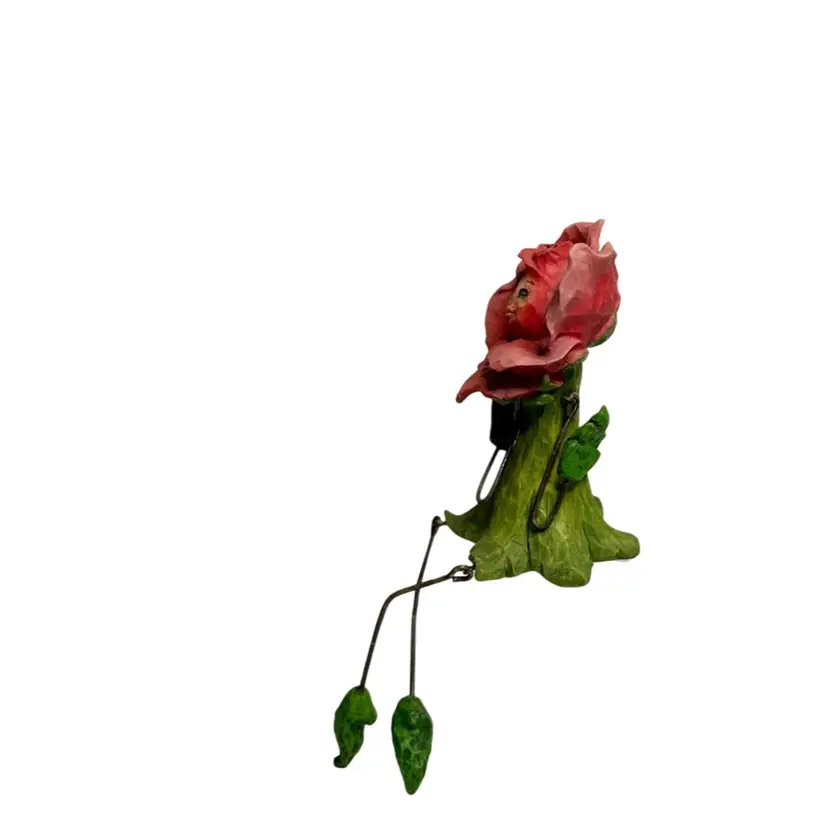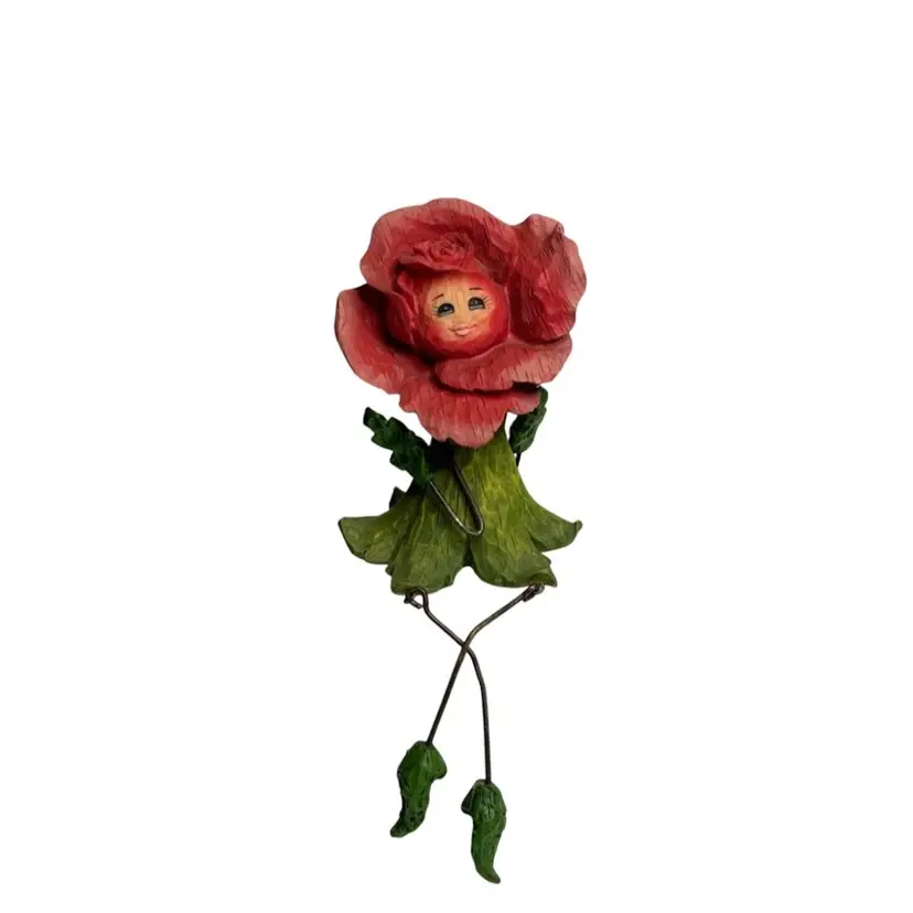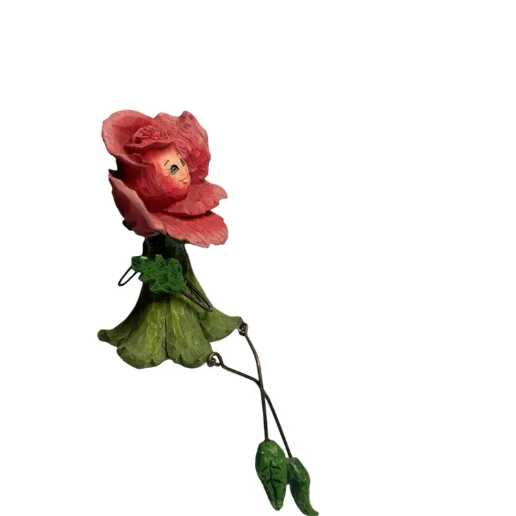 Anthropomorphic Resin Pink Lily Flower Shelf Sitter Figurine, absolutely adorable smiling flower.