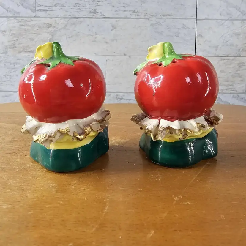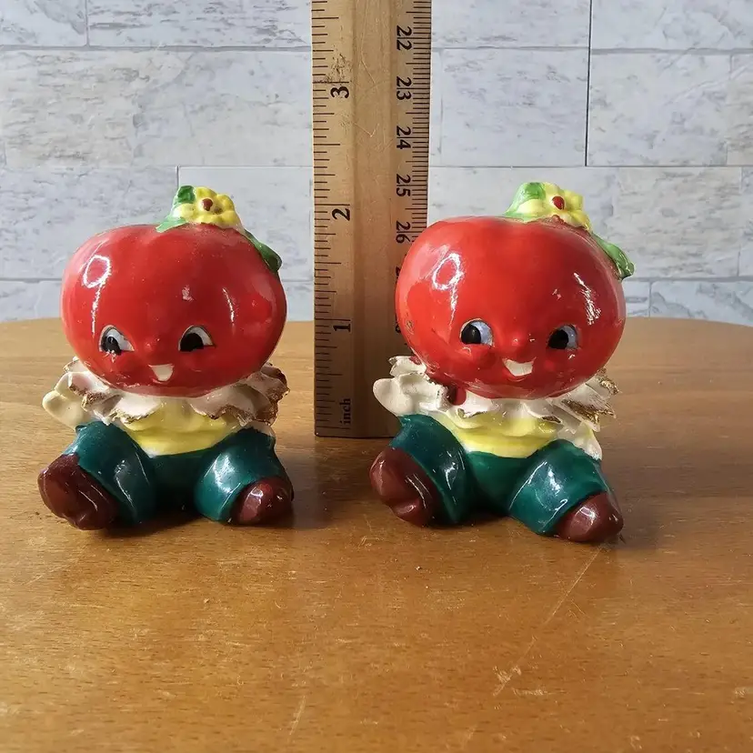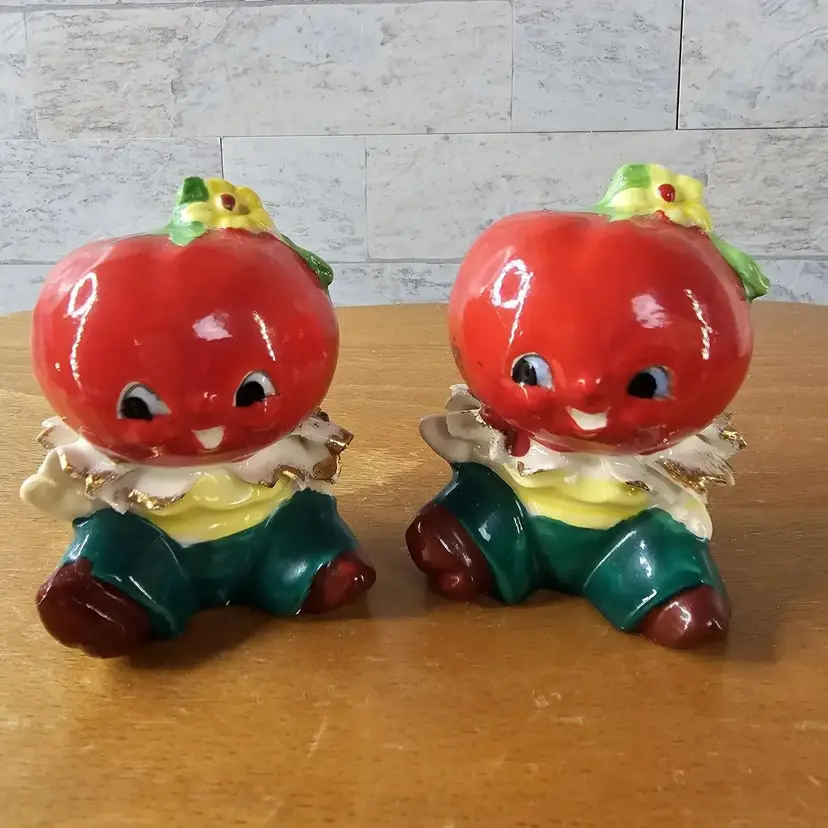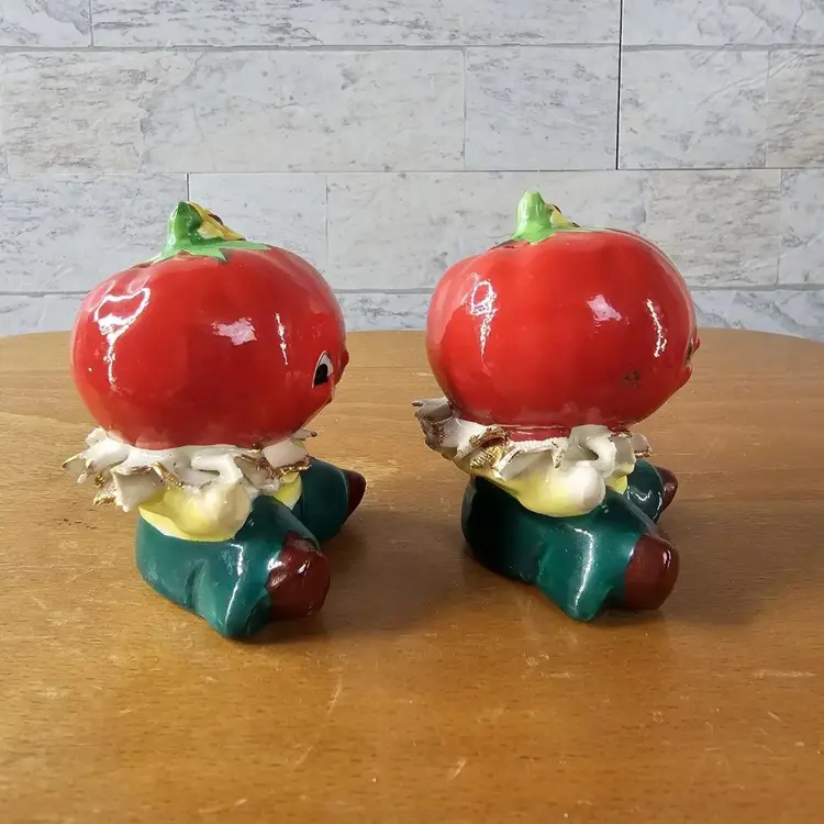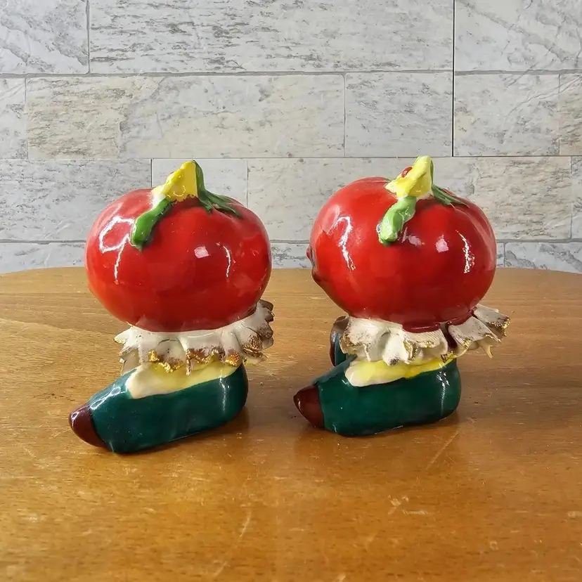 Anthropomorphic Tomato People Sitting Salt & Pepper Shakers Made In Japan Kitsch