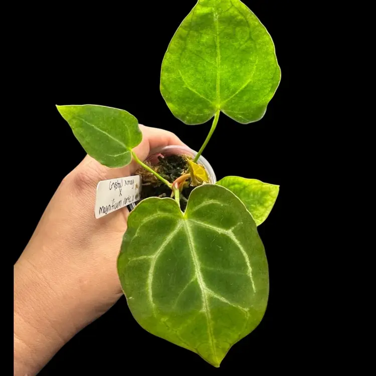 This plant is currently living in 65%+ humidity. It can be acclimated by using a plastic tub and opening the top little by little over 1-2 weeks. It is recommended to keep anthurium seedlings in higher humidity until they become more established plants.