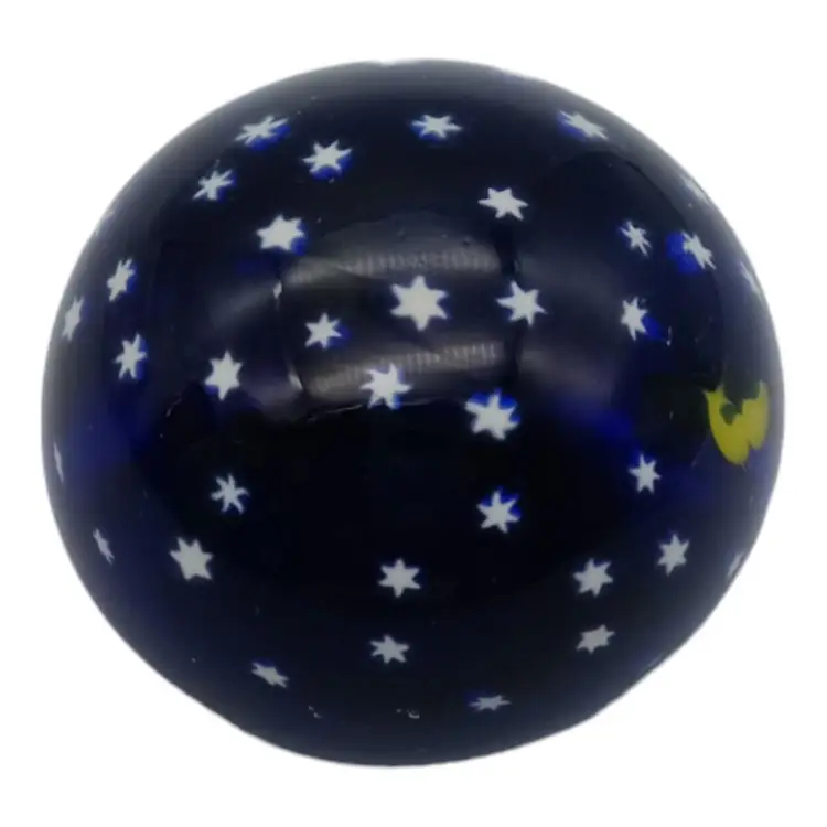 Marvel at the deep blue hues reminiscent of the night sky, adorned with white stars and a hint of yellow, possibly depicting a crescent moon. This piece is a rare find, showcasing exceptional artistry. It is free from chips, cracks, breakage, or scratches, ensuring its pristine condition. While the Antica Murrina marks may show some wear on the bottom, it in no way detracts from the overall beauty of this unique creation. A must-have for collectors or anyone seeking a distinctive piece to adorn their space with elegance and charm.