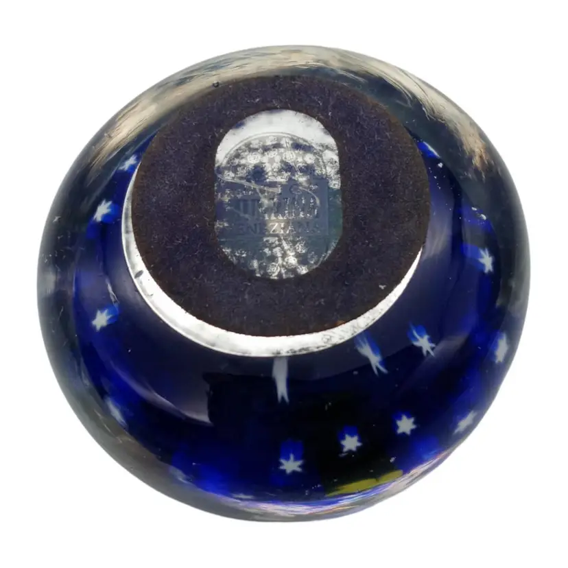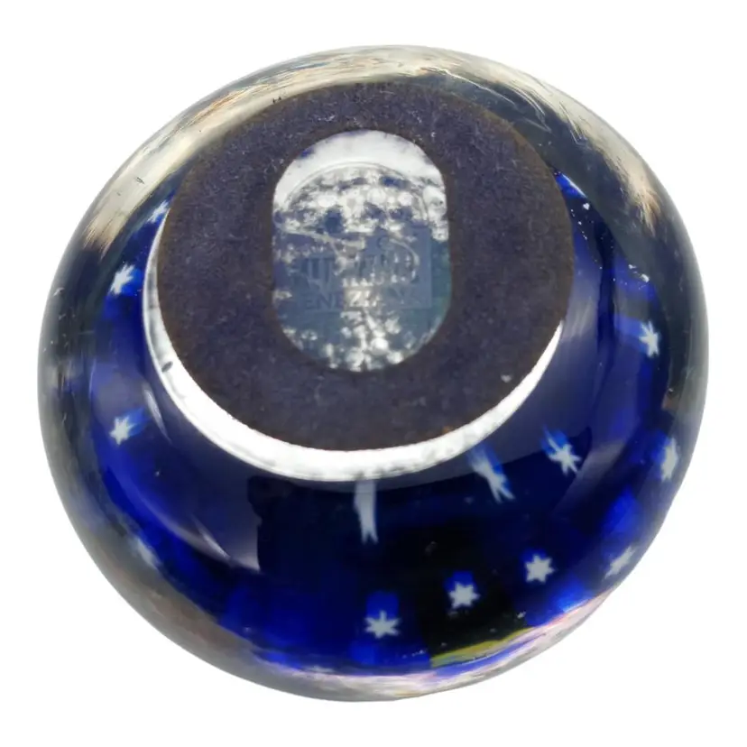 The Antica Murrina Veneziana Handmade Murano Rounded Glass Paperweight – a true gem crafted in Murano using the exquisite 'Murrina' technique. Measuring 1 1/2" in width and 2" tall, this small yet captivating paperweight represents "La Notte" or The Night.