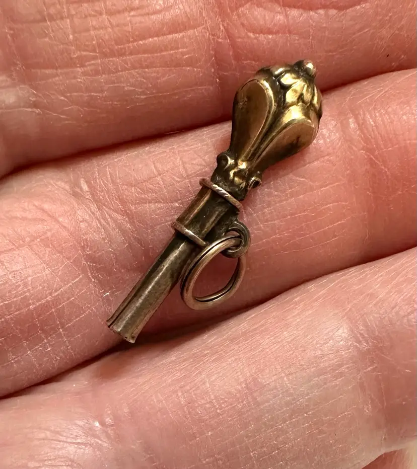 Antique Victorian watch key has a 10k gold top. The tube is gold overlay. The key measure 1”. Very good condition.