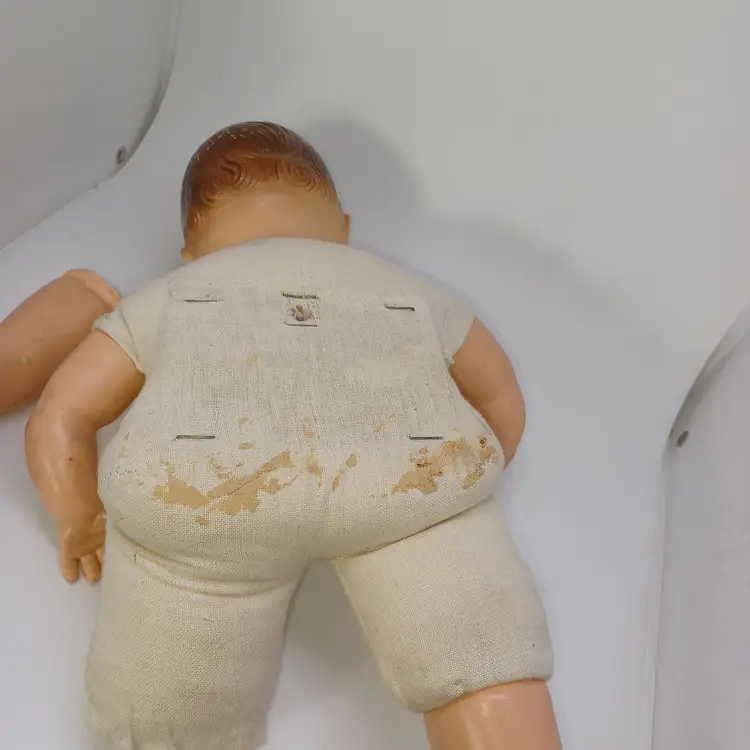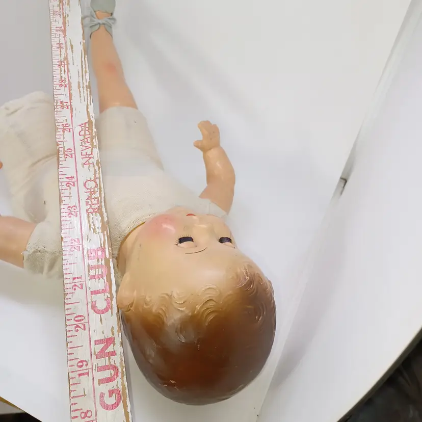 SIZE: 18 tall x 7" Including an antique baby onesie **You are buying her AS IS. I don't know if clothes are original to her.