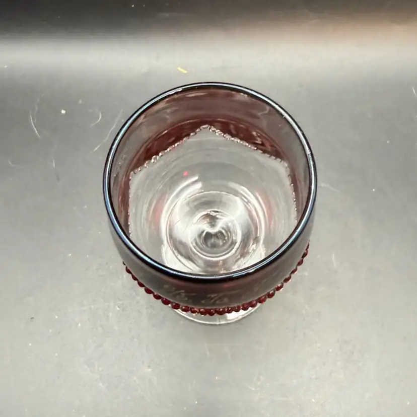 This Ruby-flashed glass, like the piece in question, was a significant part of Heisey's production, especially during the early 20th century. The "Beaded Swag" pattern, often found in ruby flash, is etched and gilded. The presence of the Heisey mark on the bottom of the glass confirms its authenticity and manufacturer, adding considerable value and historical context to the piece.