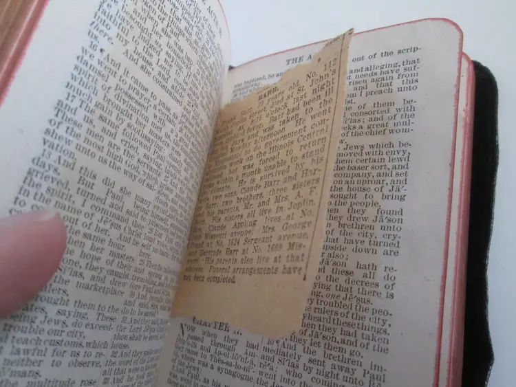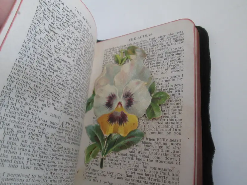 Antique 1905 Pocket New Testament. Signed and dated. It measures 3" x 4 1/2". There are little papers tucked inside the pages. It will be a fun surprise for you to discover them.