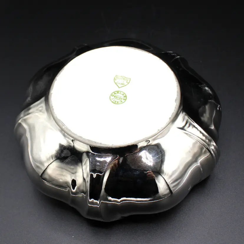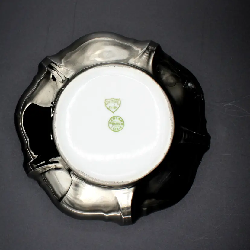 Antique 1920s Silverite Sterling Silver Porcelain Trinket Dish Art Deco Bowl