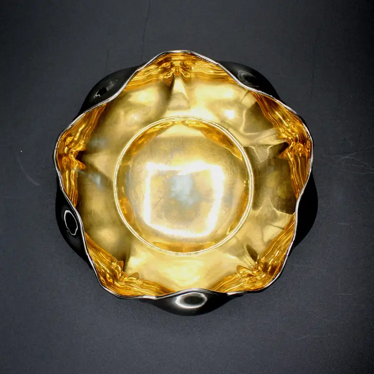 Condition: Very good antique condition. Minor surface wear to the silver overlay and light wear to the gold-washed interior, consistent with age and gentle use. No chips or cracks noted. Displays beautifully.