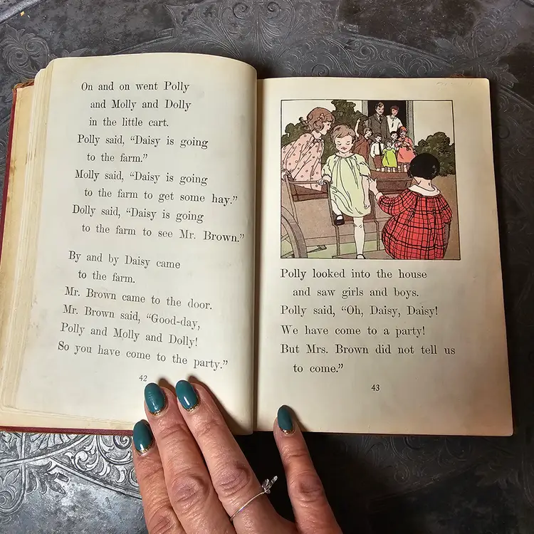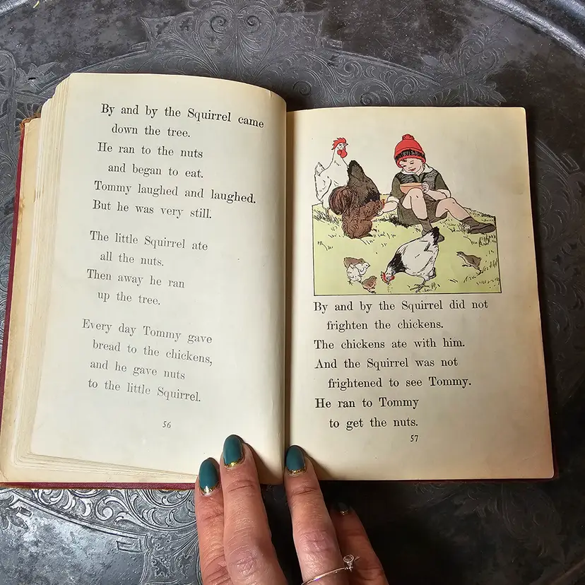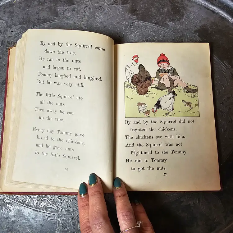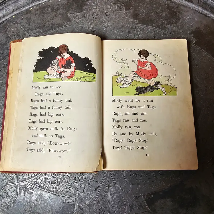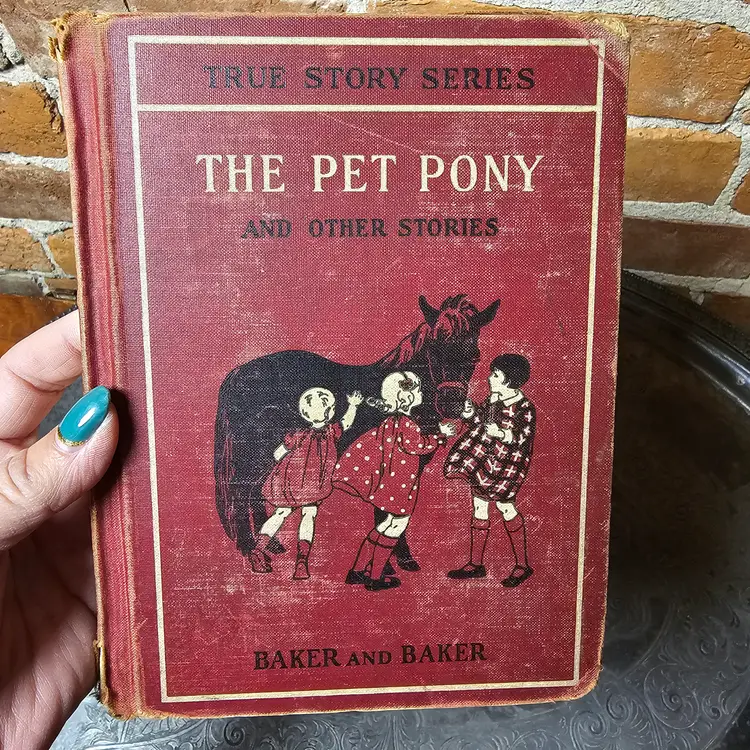 Step back into early 20th-century classrooms with this charming children’s primer from the True Story Series. The Pet Pony and Other Stories was designed to teach young children to read through simple repetitive text paired with engaging color illustrations of children, animals, and everyday life.