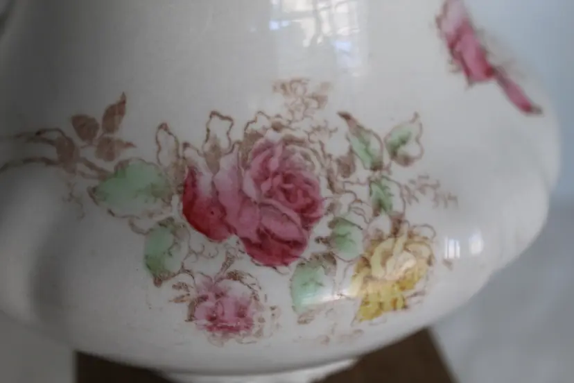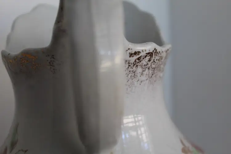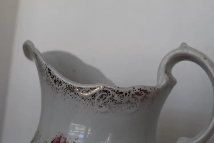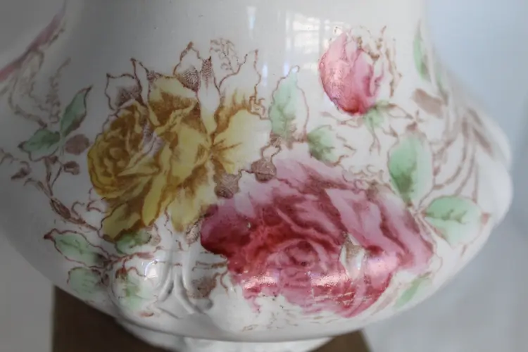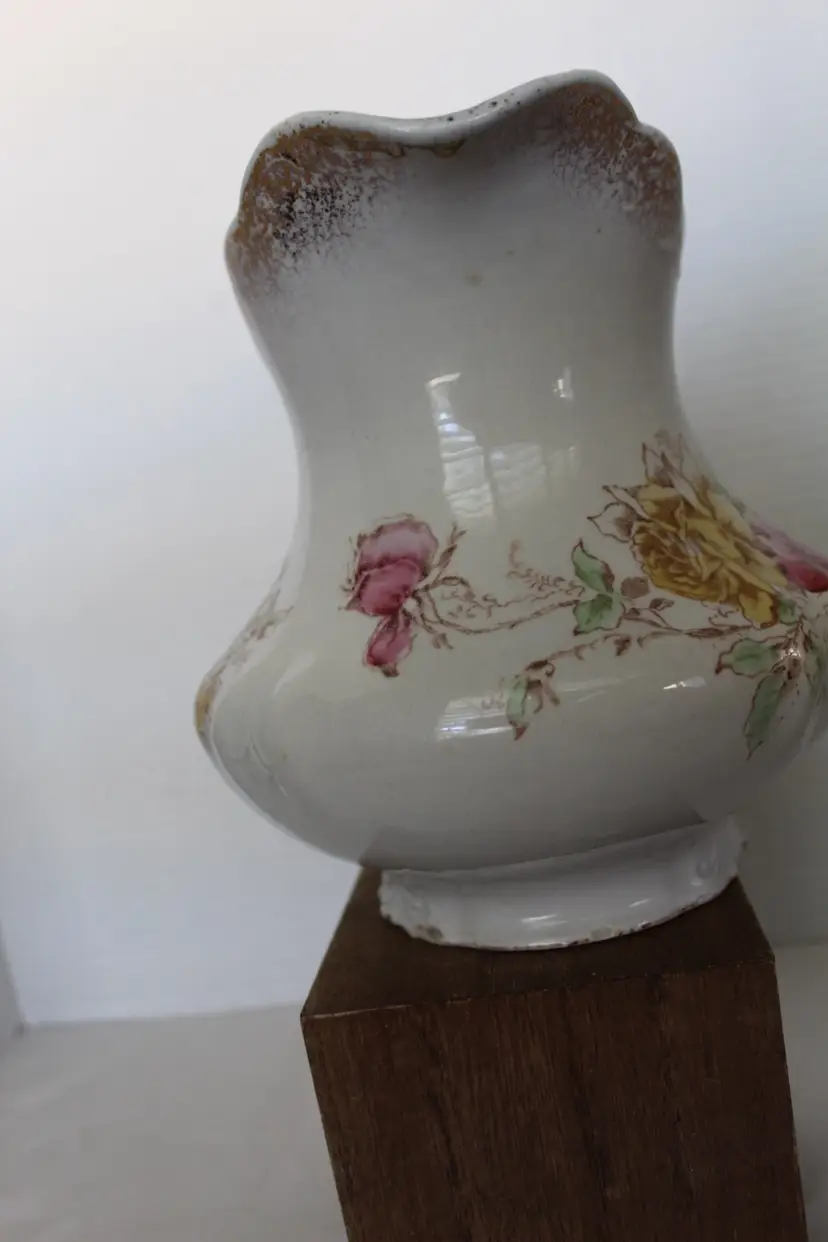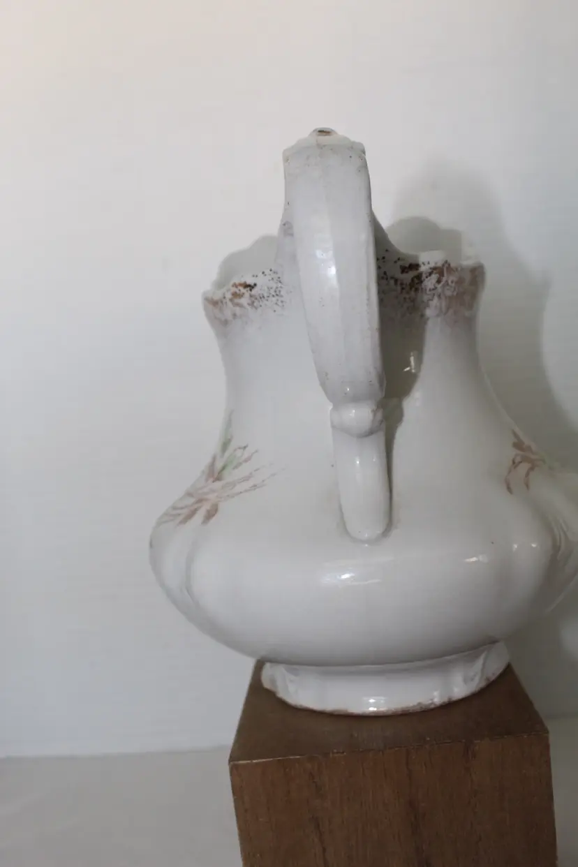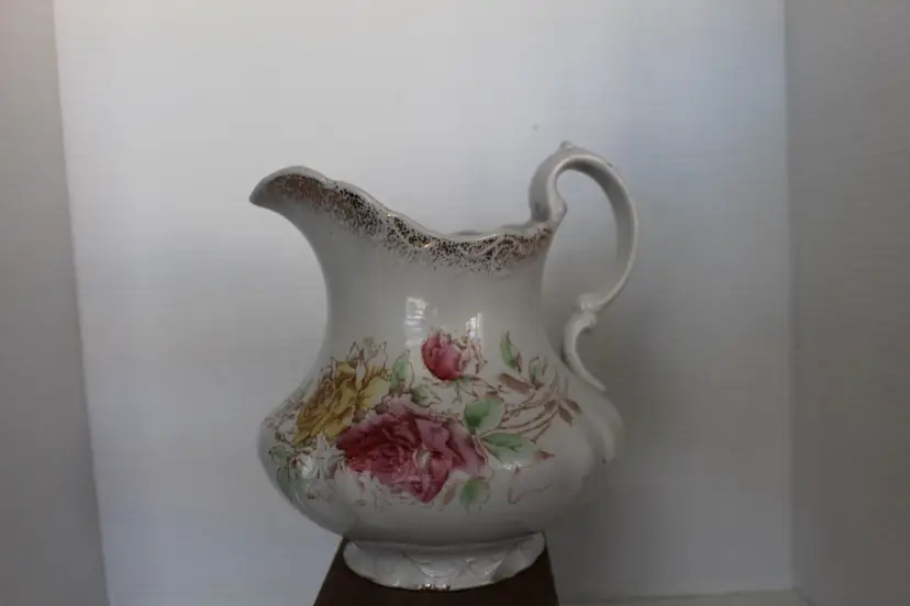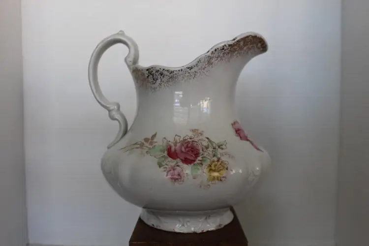 This Antique 7 Inch Semi Porcelain Ewer with a Floral Pattern by Willet Manufacturing Co is a beautifully crafted piece that adds a touch of vintage charm to any collection. Made in the United States between 1879-1906, this round ewer features a multicolor floral design and a glazed finish. With a medium size and easy-to-fill handle, this original antique piece is perfect for those who appreciate unique and antique dinnerware items. The semi-porcelain material requires hand washing, but the intricate design and historical significance make it a valuable addition to any kitchen or home decor.