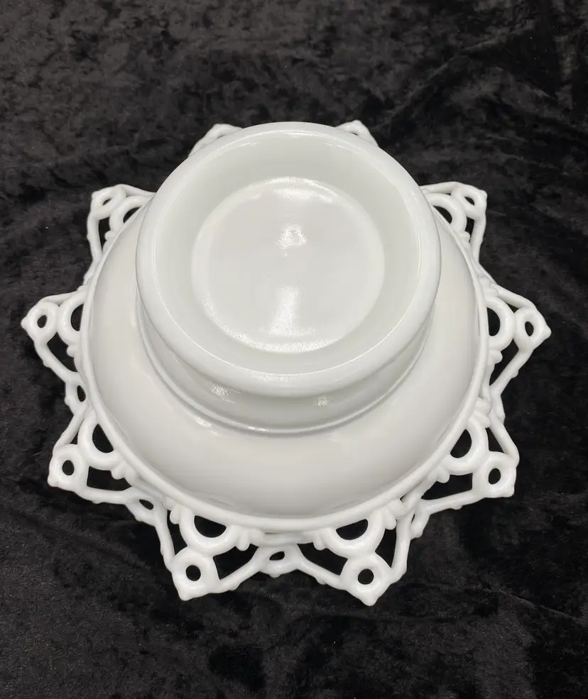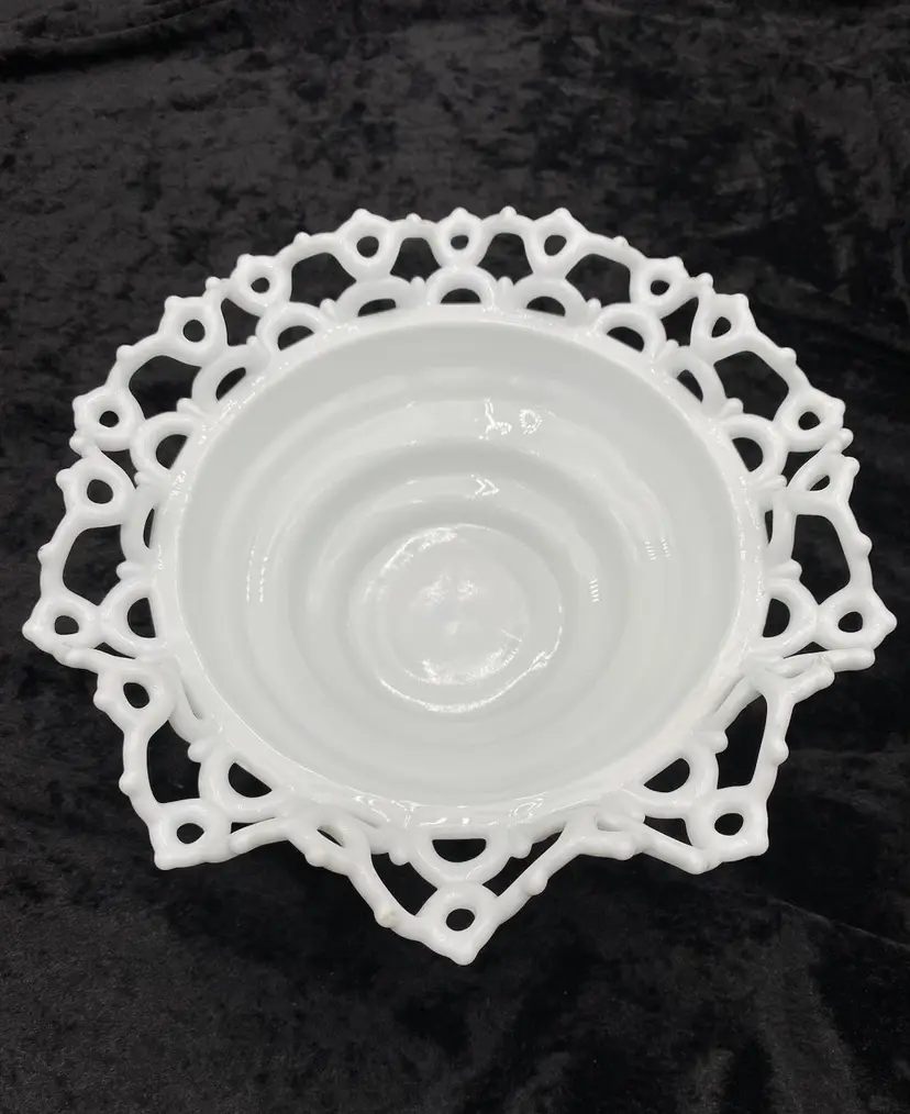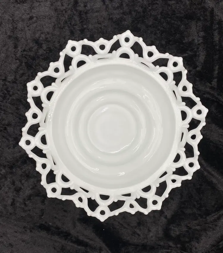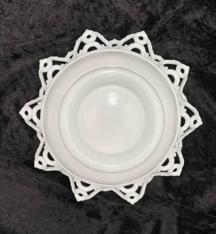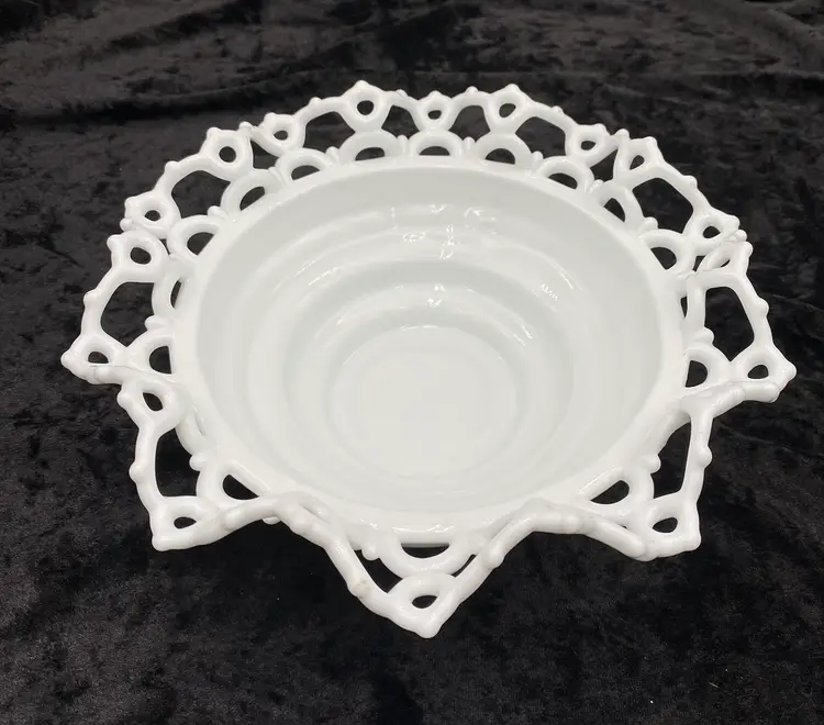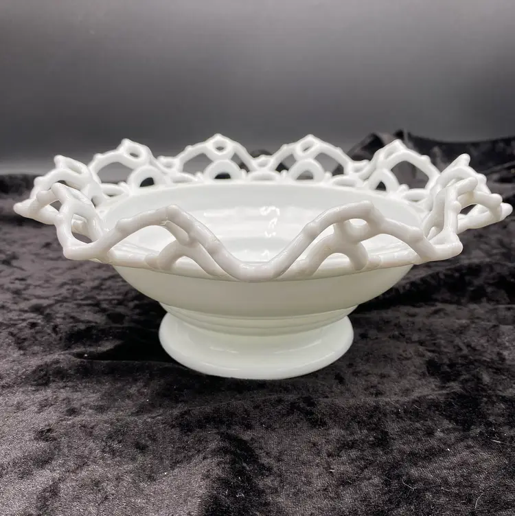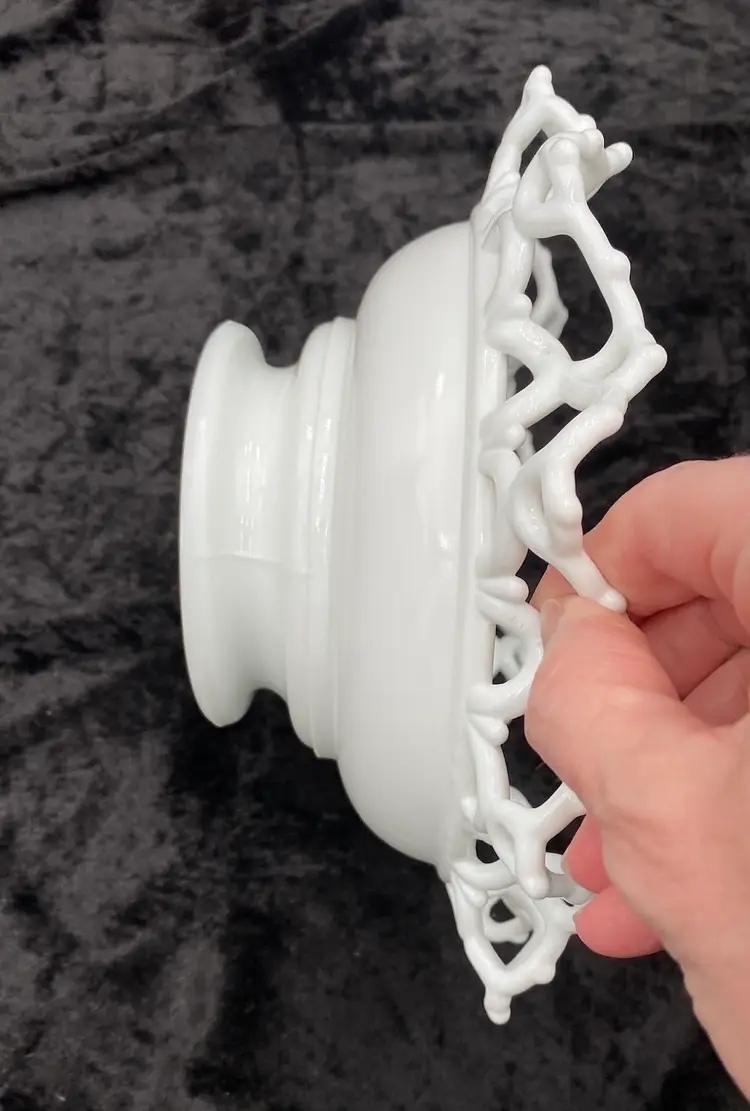 Experience the charm of the Victorian era with this Atterbury & Co. milk glass bowl, featuring the "Dancing Sailors" pattern in a crimped edge along the bowl. Crafted @1886, this authentic antique piece showcases the elegance of the time with its round shape, glossy finish, and open edge design. Measuring 8.5 inches in width and 3.5 inches in height, this bowl is a testament to the craftsmanship of the period. Produced in Pittsburgh, Pennsylvania, this unusual item is a true representation of 19th-century American pressed glass artistry. Whether displayed as a collector's piece or used to serve guests, it adds a touch of historical sophistication to any setting. Note: Atterbury & Co. ceased operations in 1899 and they produced this pattern. Imperial Glass reproduced some Atterbury glass much later, but all of those reproductions have the Imperial Glass mark stamped on them. This piece has no mark, which leads me to believe it is Atterbury.