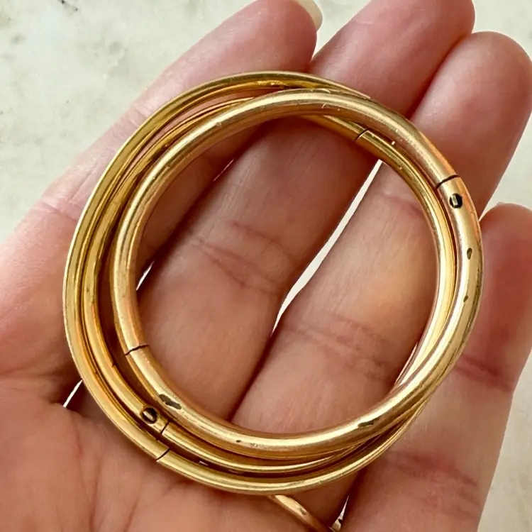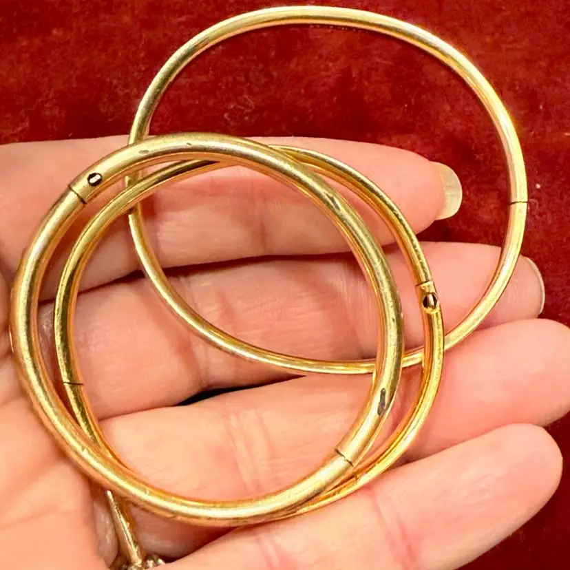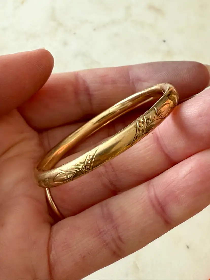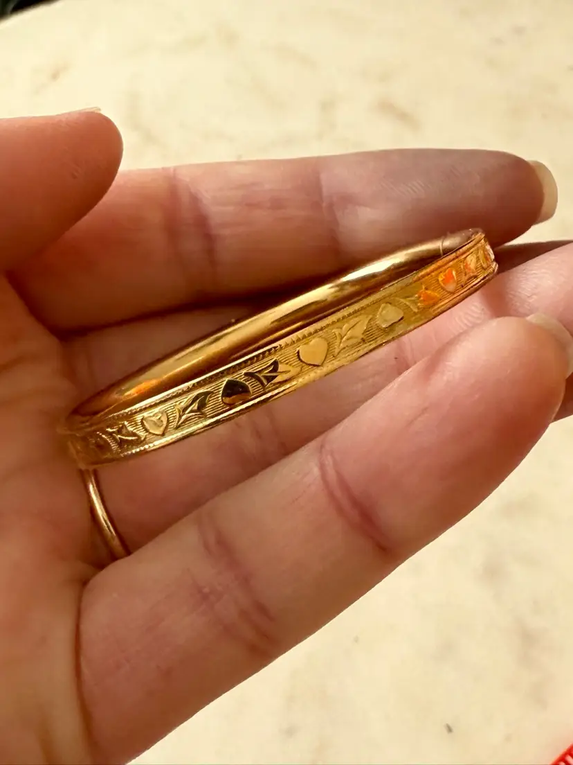 Antique Victorian Embossed Chased 1/20th 12K Gold Filled Baby Bracelets Lot of (3) as Featured in Photos. All in very nice overall condition with minimal signs of use consistent with wear and age. All clasps work securely with internal safety bar. All hallmarked 1/20th 12K gold filled. Inner circumference determined by photos. Accommodates infant and small child size. Sweet gift for infant, baby shower, small child, christening or birthday.