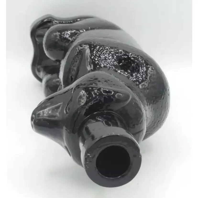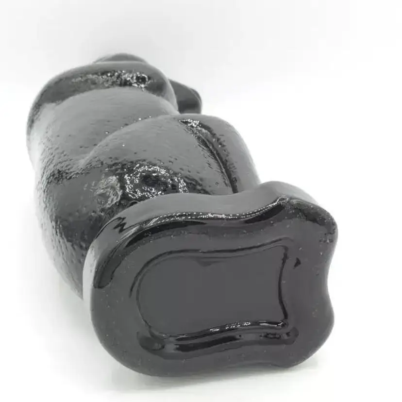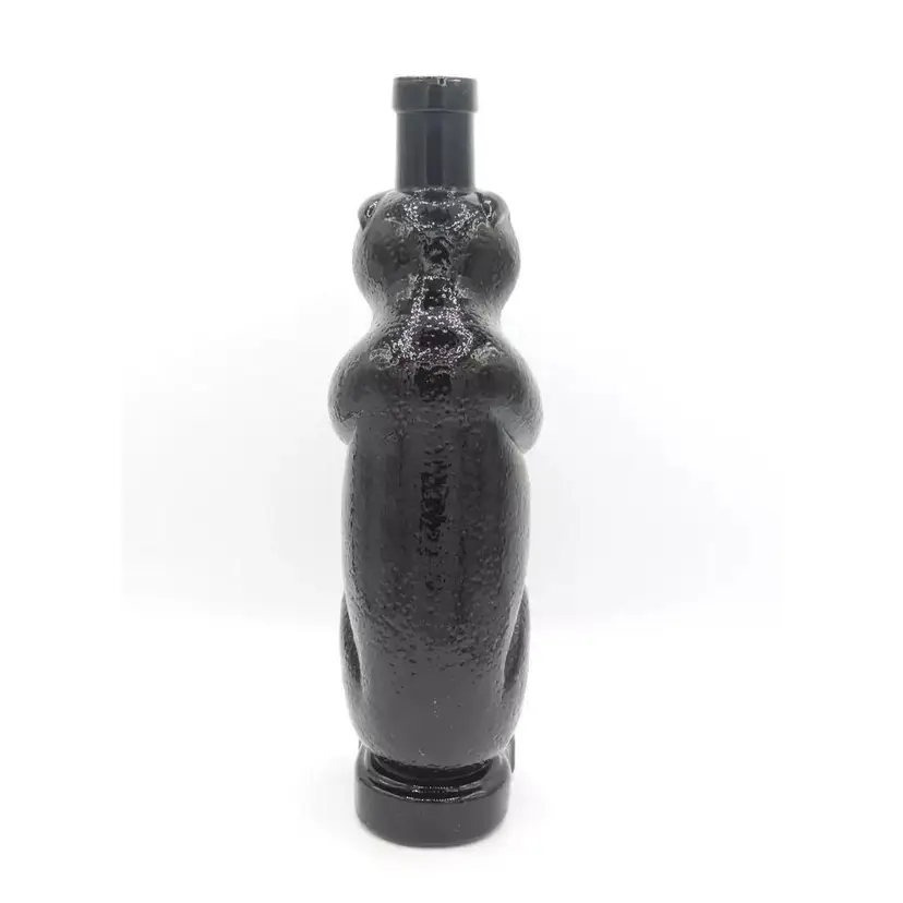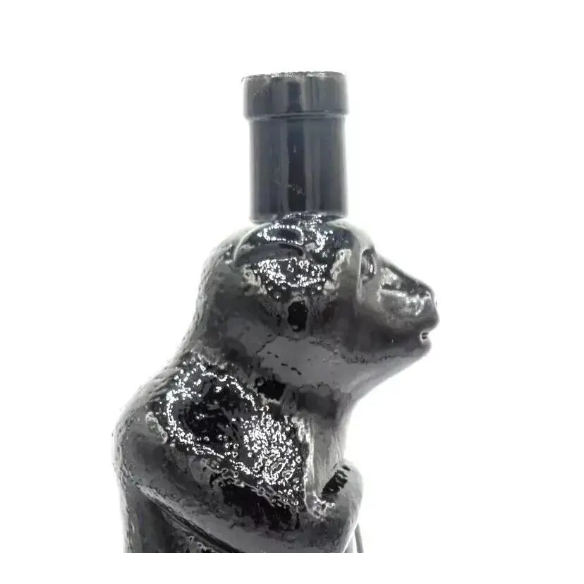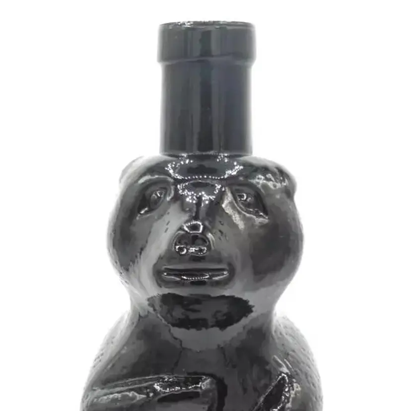 This very rare, antique, 1885-1895, black amethyst glass Kummel beer bottle features a unique figural bear design that is a must-have for any breweriana collector. Made in Germany, this rare bottle adds a touch of history and charm to your collection. The deep black color of the glass makes it a striking addition to any display. The bottle is a figurine style, depicting a bear in a standing position. The intricate details of the bear's face and fur make this piece a true work of art. This collectible item is perfect for those who appreciate the history and craftsmanship of beer bottles. This is the REAL DEAL and not one of the much later reproductions that have the screw top ridges and longer neck. THIS IS AN AUTHENTIC, GERMAN KUMMEL BOTTLE!! It is 11" tall. It is in GREAT condition. No cracks or damage! Please see all pics, as they are part of the description.