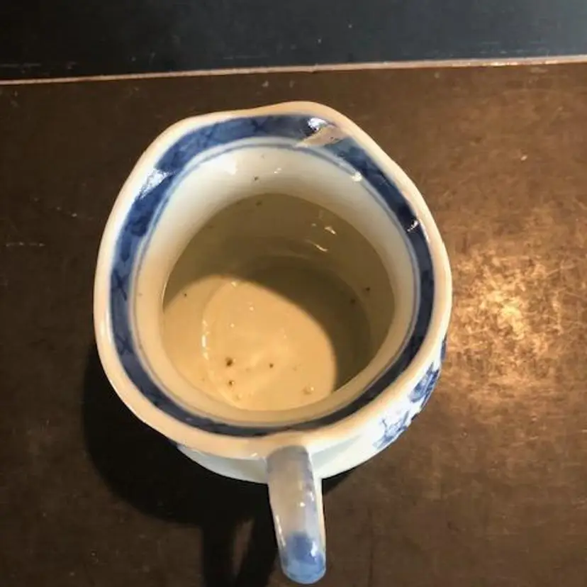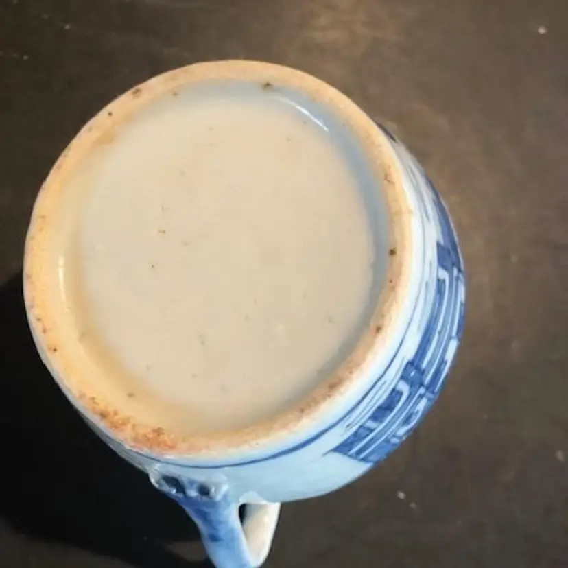 Antique Blue & White Canton Chinese Export Porcelain Creamer. 3-1/4" tall, 4-1/2" wide to handle. Depicting Chinese Village. Some staining near handle.