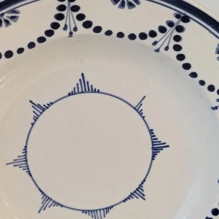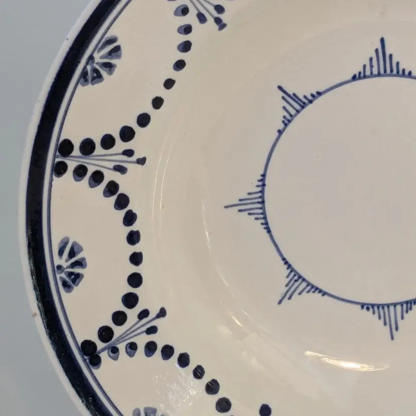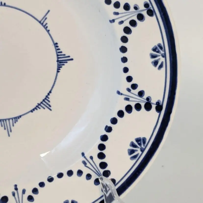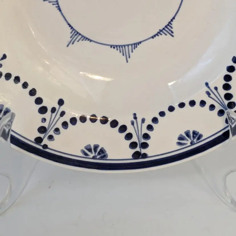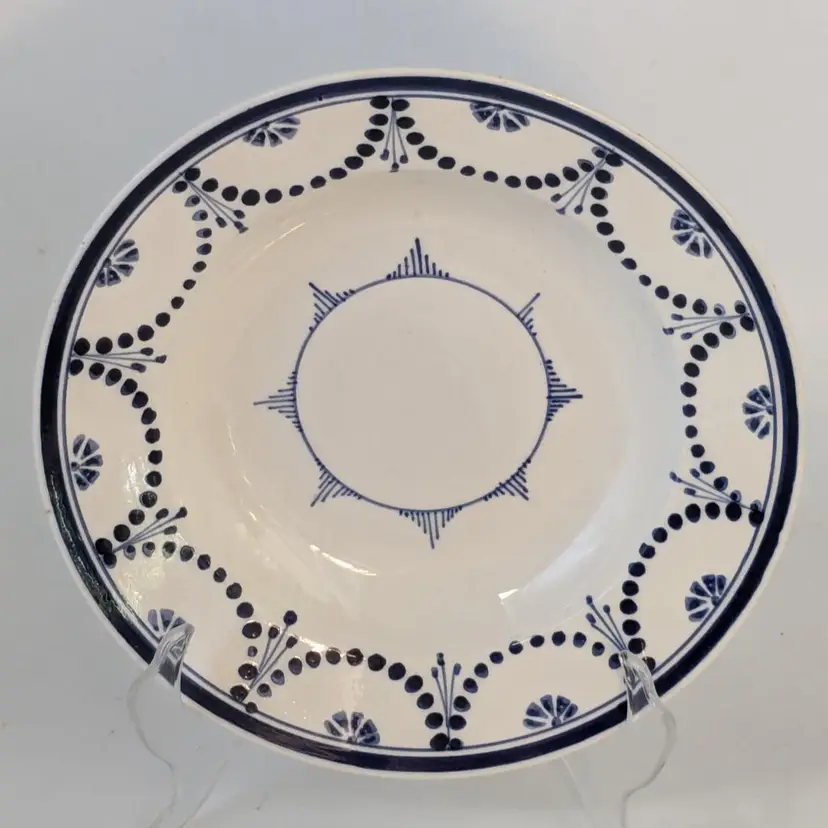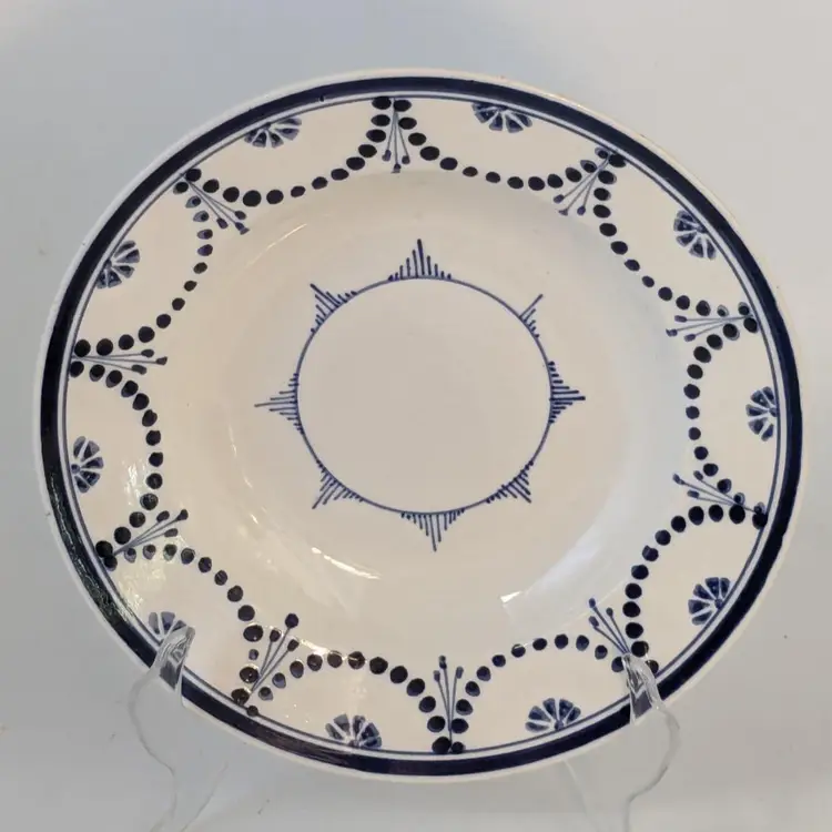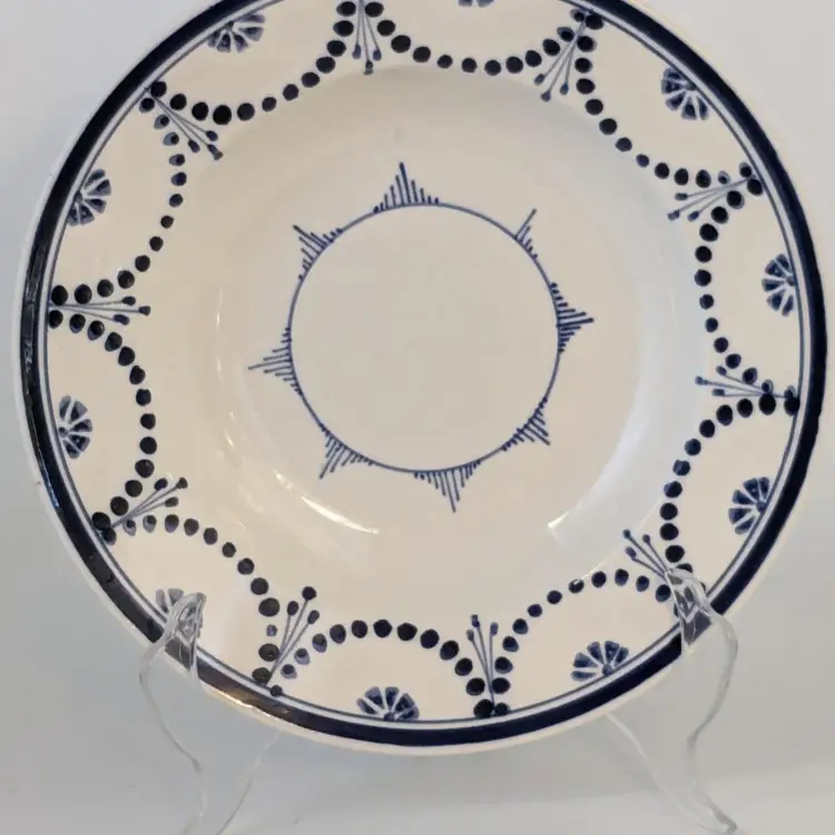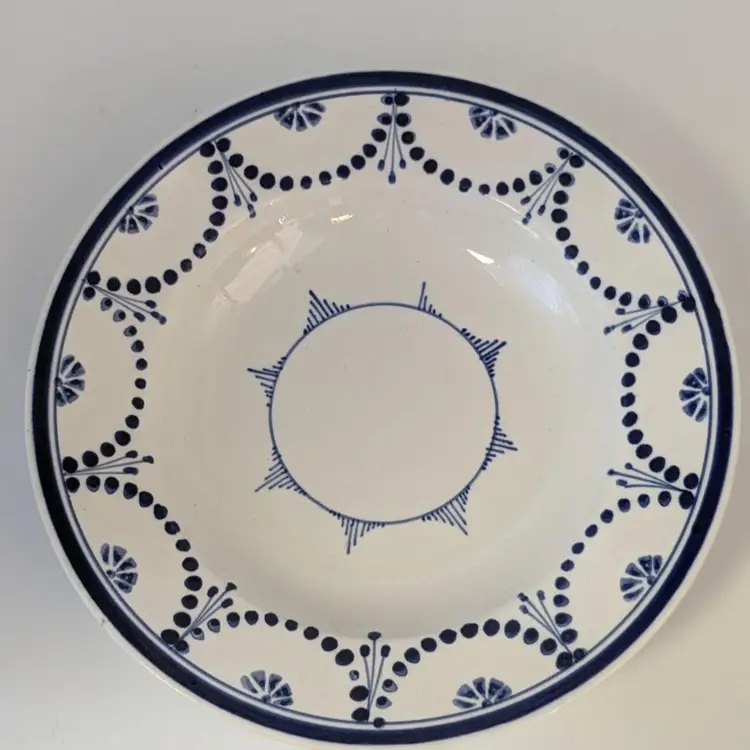 Brilliant blue and white soup bowl is in good condition with no chips, cracks or crazing. Belgium made circa 1880. Measures 8 1/2" wide.