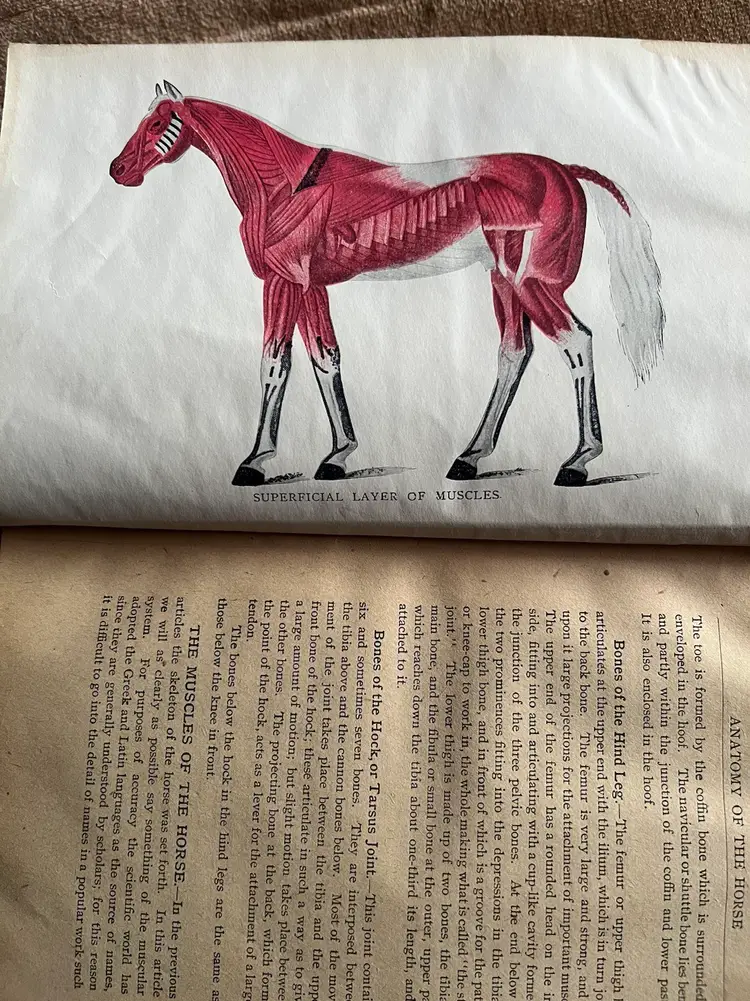 This 840 page tome measures approximately 9 x 6 x 2.75” and covers all you need to know about horses, cattle, sheep, swine, poultry, & dogs circa 1912!