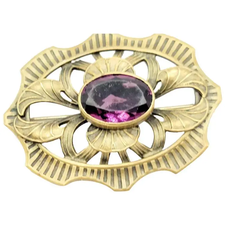 Antique Brass Victorian Sash Pin With Glass Stone (A2602)