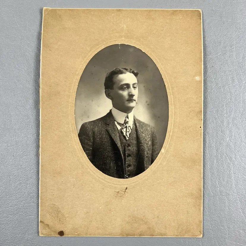 Antique Cabinet Card Photo Portrait Young Man Formal Wear Identified As Emil Thines Of Little Rock, Arkansas, not written on photo but we have more photos from the same estate. 6x8"