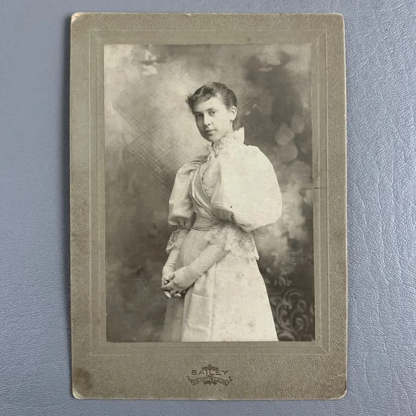 Antique Cabinet Card Photo Young Female Portrait Bailey Mansfield Pa 1896 Victorian The back state "16 yrs old" Femaile is dressed in large puffed sleeves and a high collar. 5x7.25"