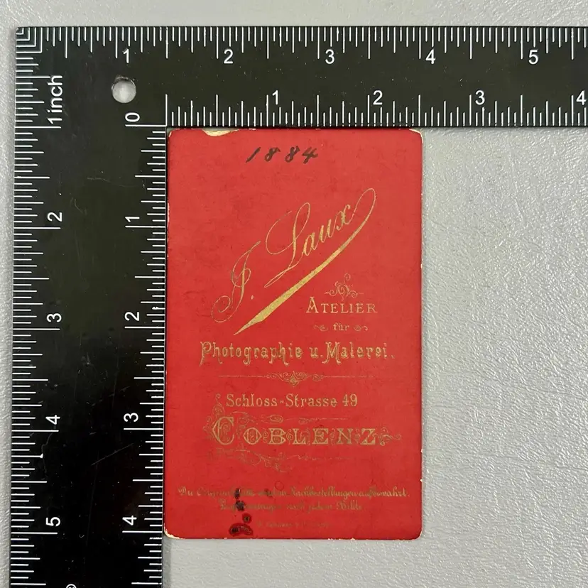 Antique Cabinet Card Portrait Photo 1884 French Woman J Laur Coblenz 2.5x4"