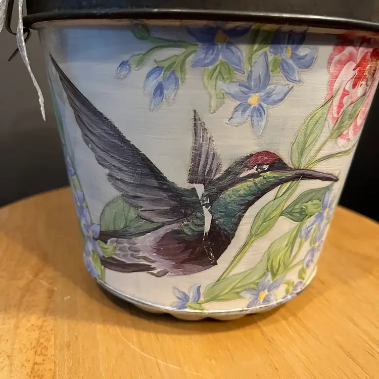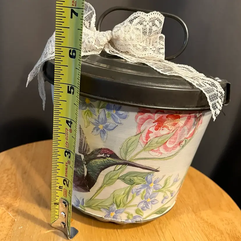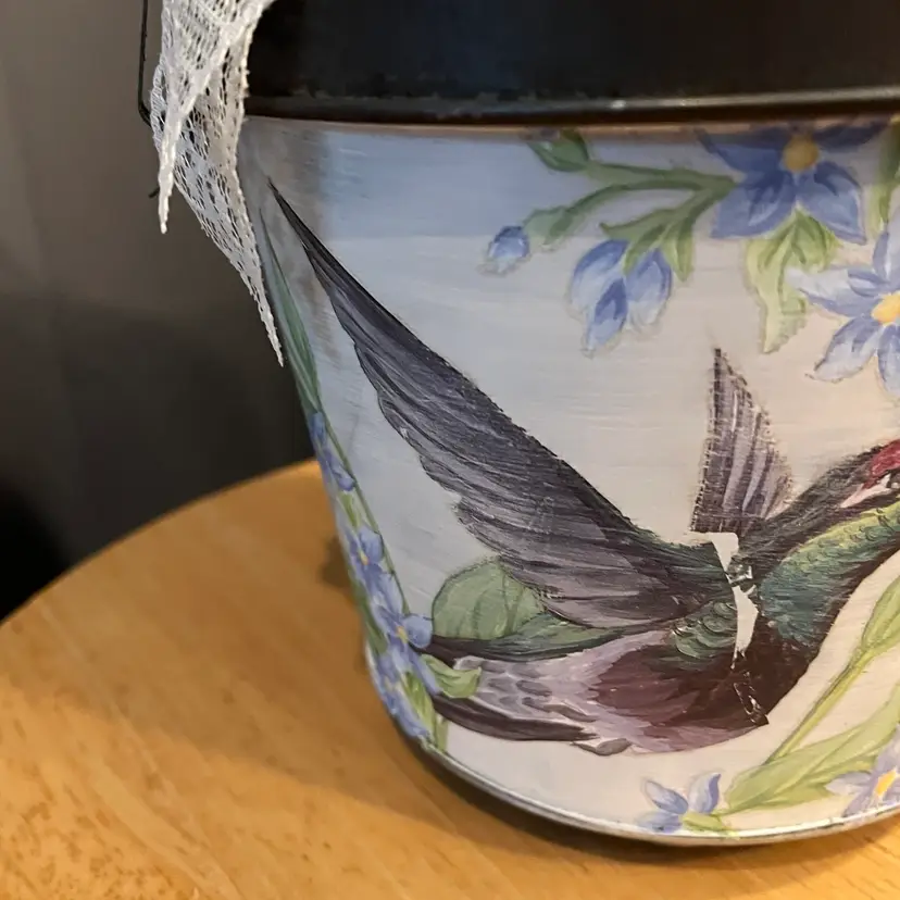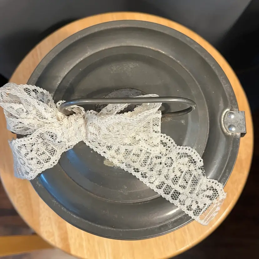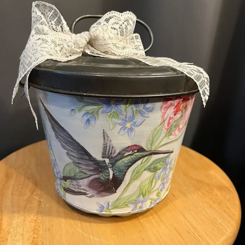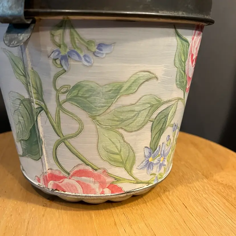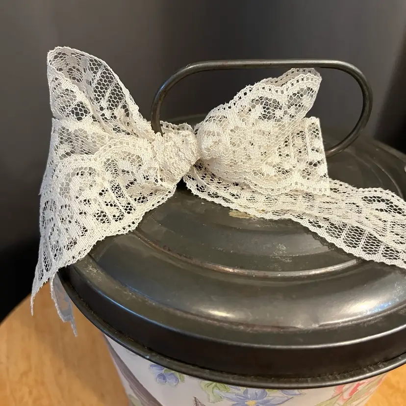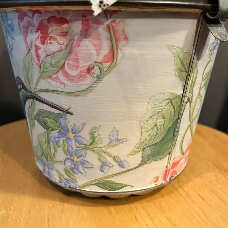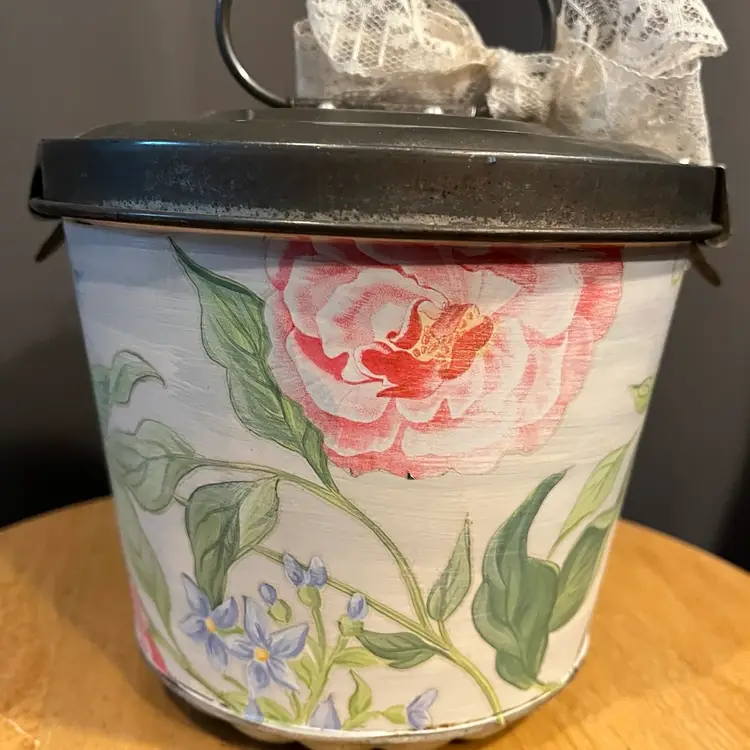 Antique baking tin given a facelift with paint, IOD transfer and dark wax