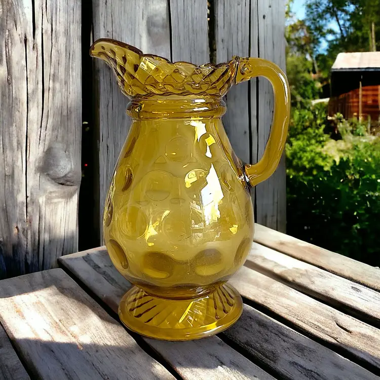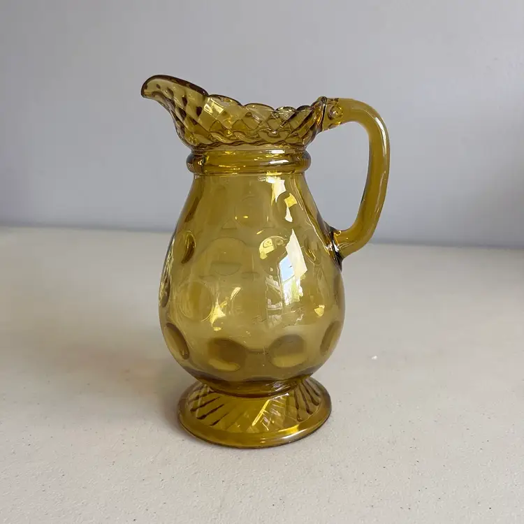 Here We Have a Antique Central Glass Co Rope and Thumbprint 0796 Amber Creamer
