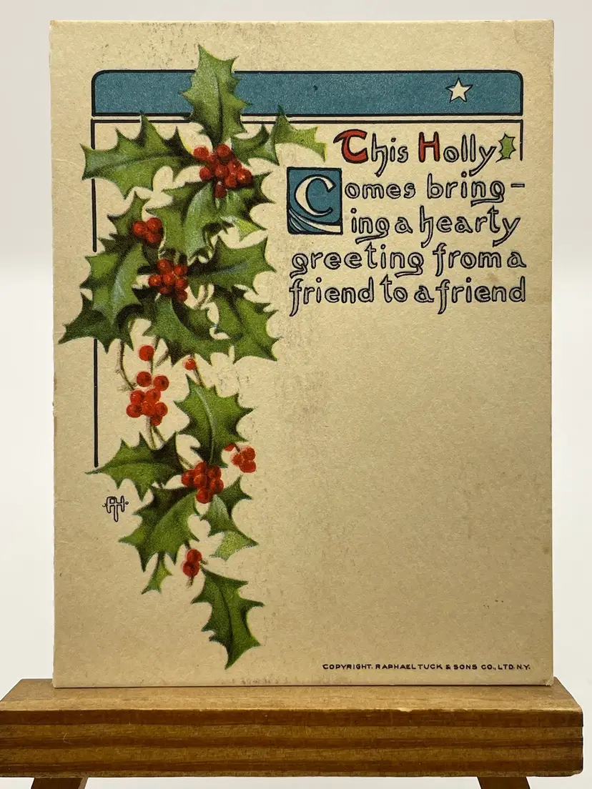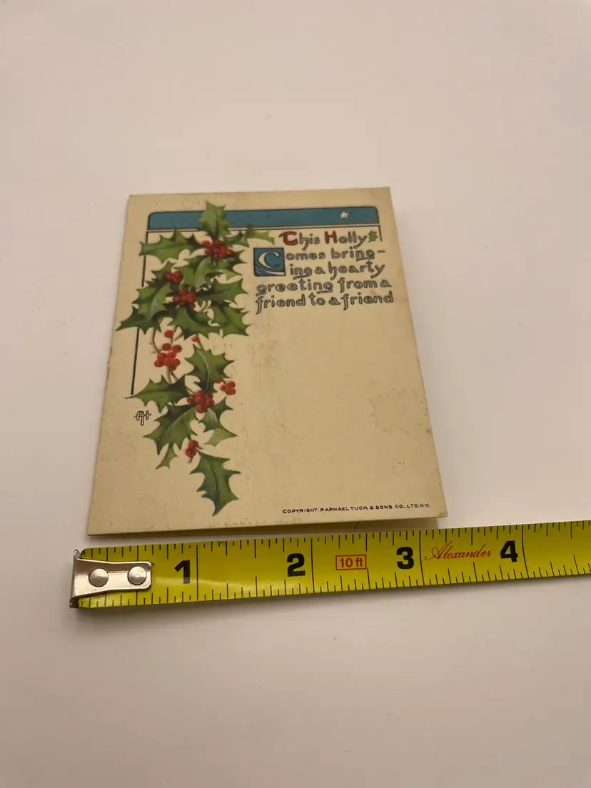 Antique Christmas Card, Raphael Tuck & Sons, London, Paris, New York, Montreal, Publishers By Appointment To Their Majesties The King And Queen, Printed In USA, Writing Inside Please see pictures for measurements.