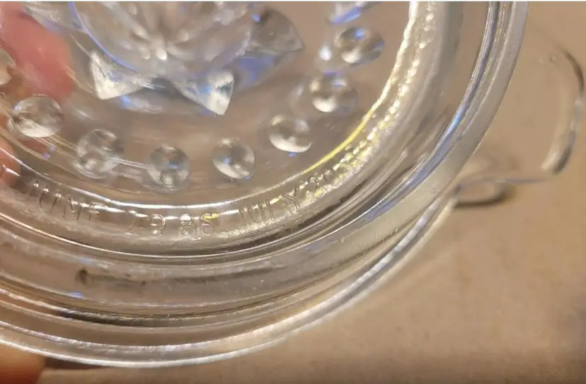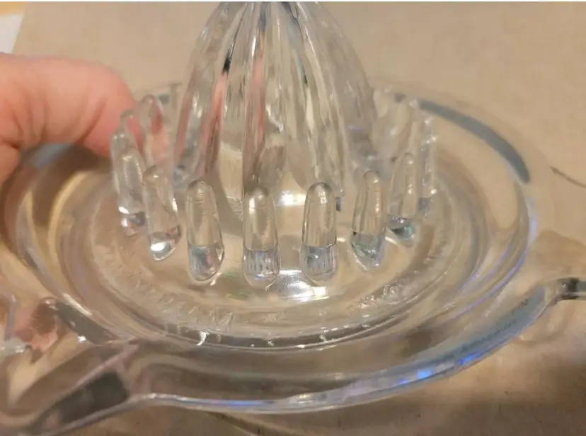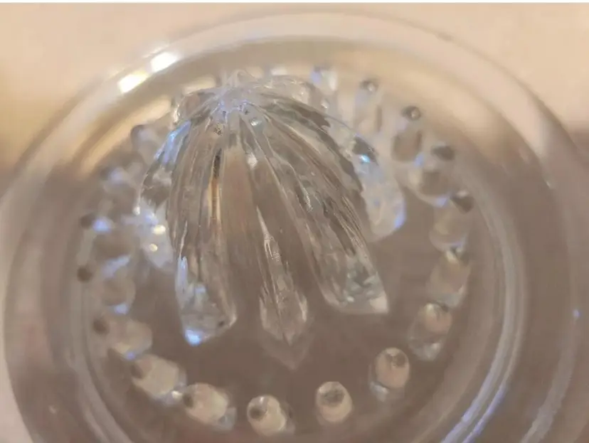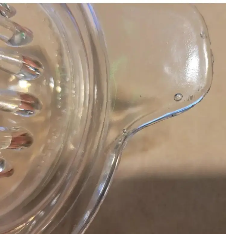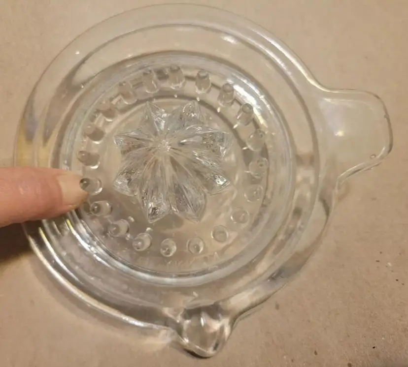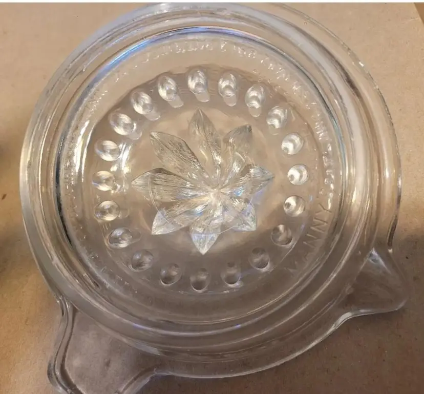 Antique Clear Glass 6” Reamer Juicer 1885 1886 Manny's Patent Dates Seeder. A very nice antique reamer or juicer that is in good condition you can see the antique patent date stamped on the bottom and it is made in the USA