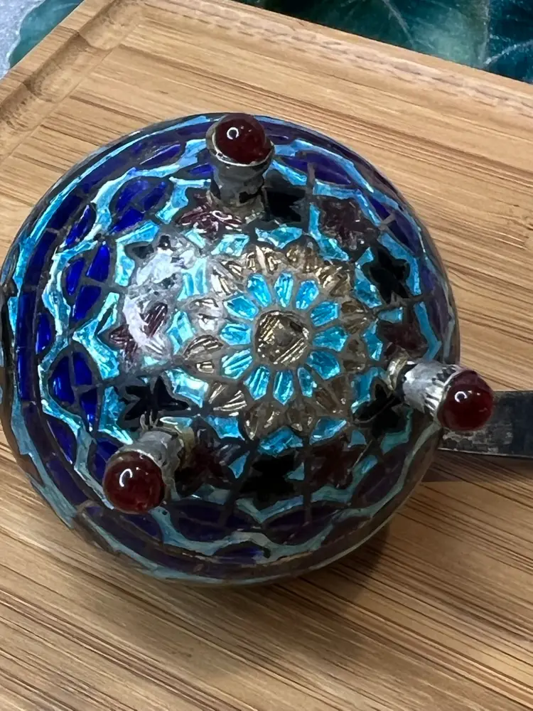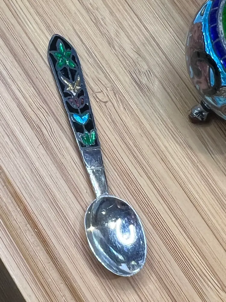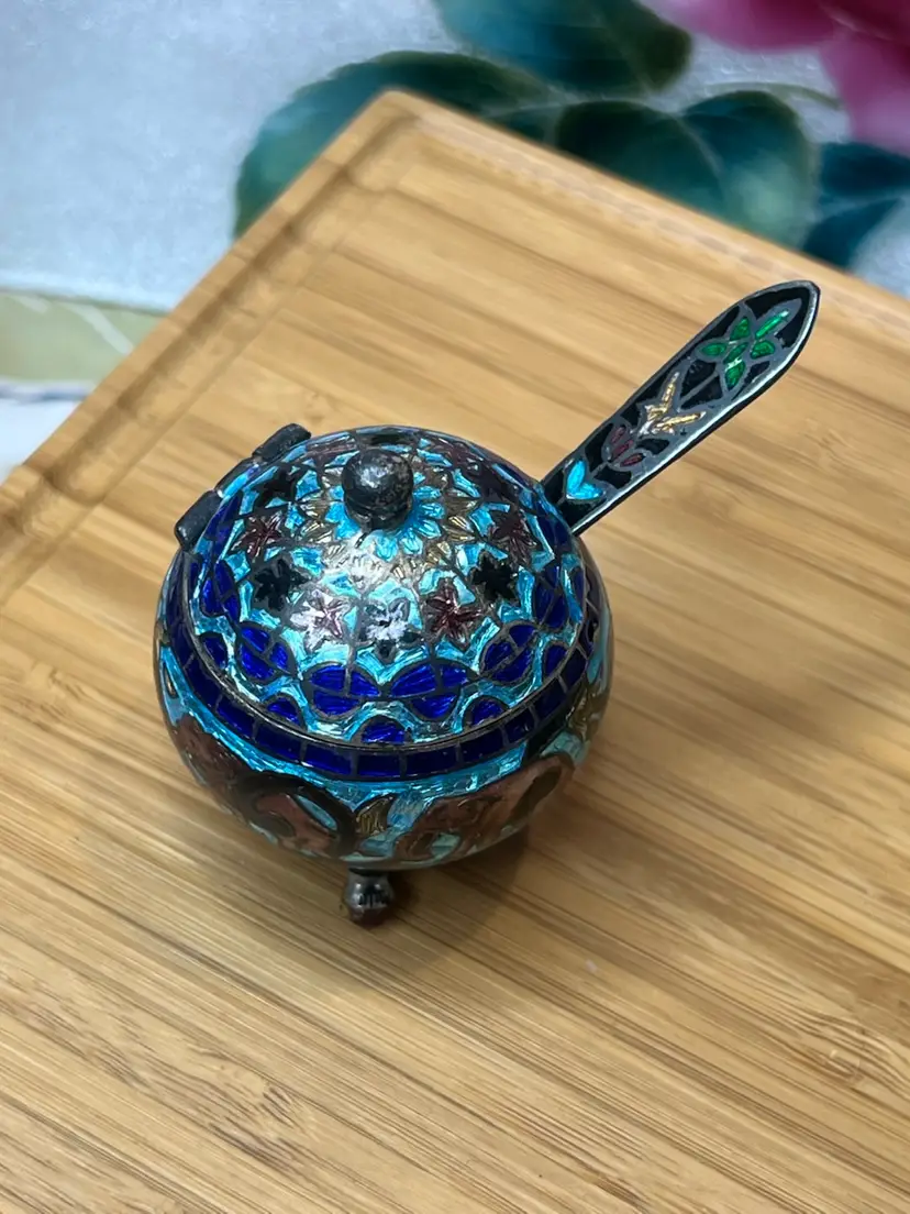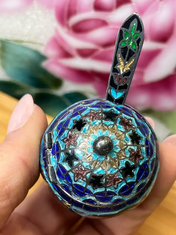 Antique Mughal salt cellar in sterling silver and enamel with elephants. Wonderful condition.