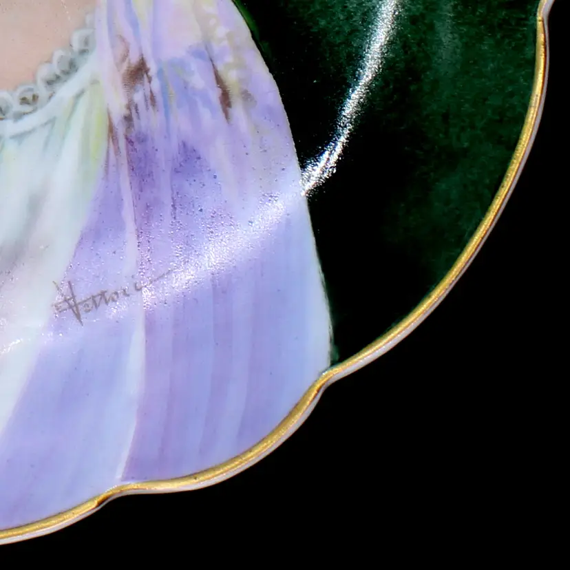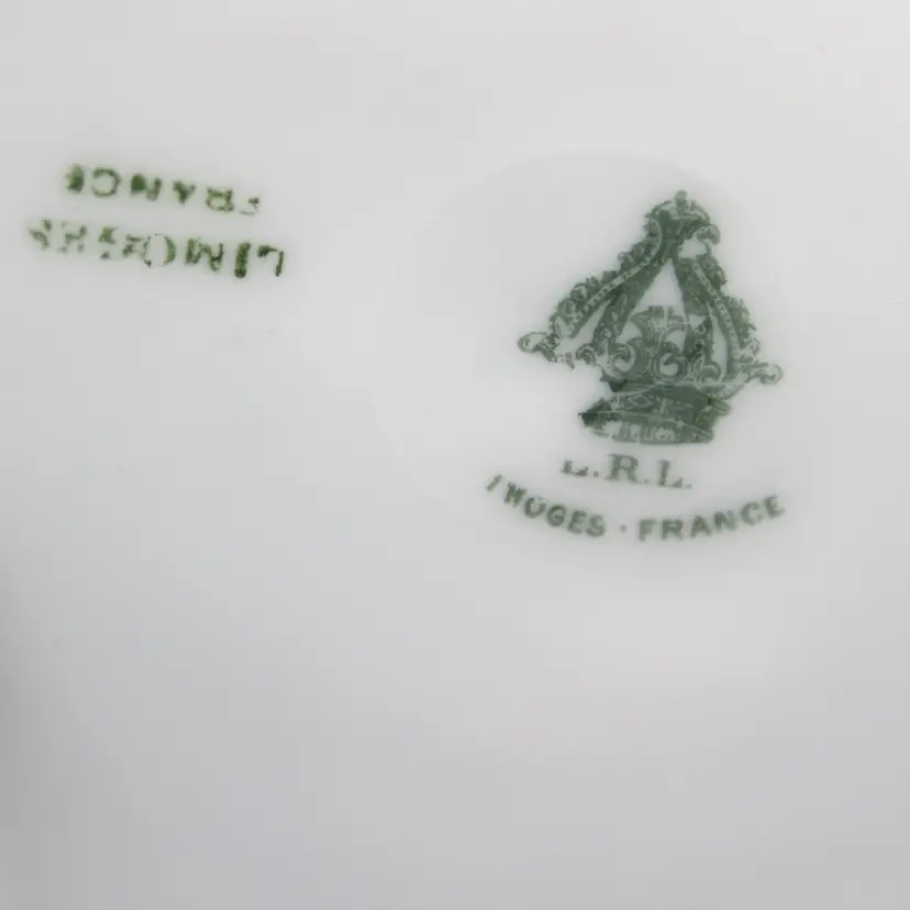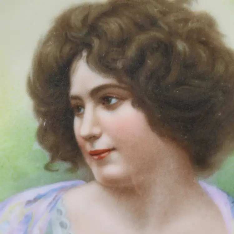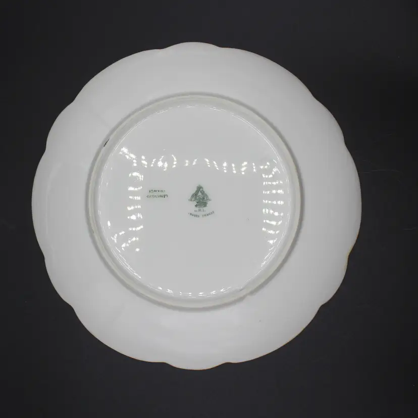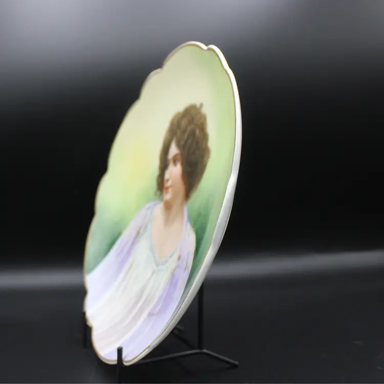 Antique Collectible Hand Painted L.R.L. Limoges France Porcelain Art Nouveau Lady Portrait Art Plate 8.5" Scalloped Edge Gold trim Signed by the Artist: E. Vettori Hallmark: L.R.L. Limoges France Mark of decorating factory Lazeyras, Rosenfeld and Lehman Circa 1920s Manufactured hole on back side of plate for hanging
