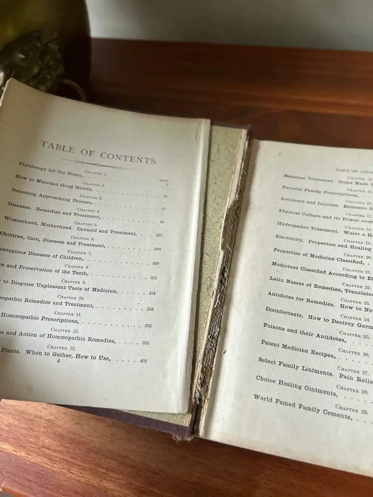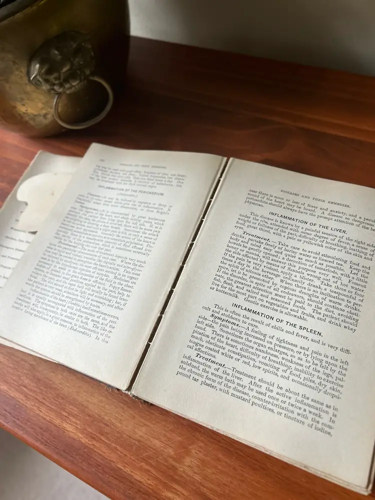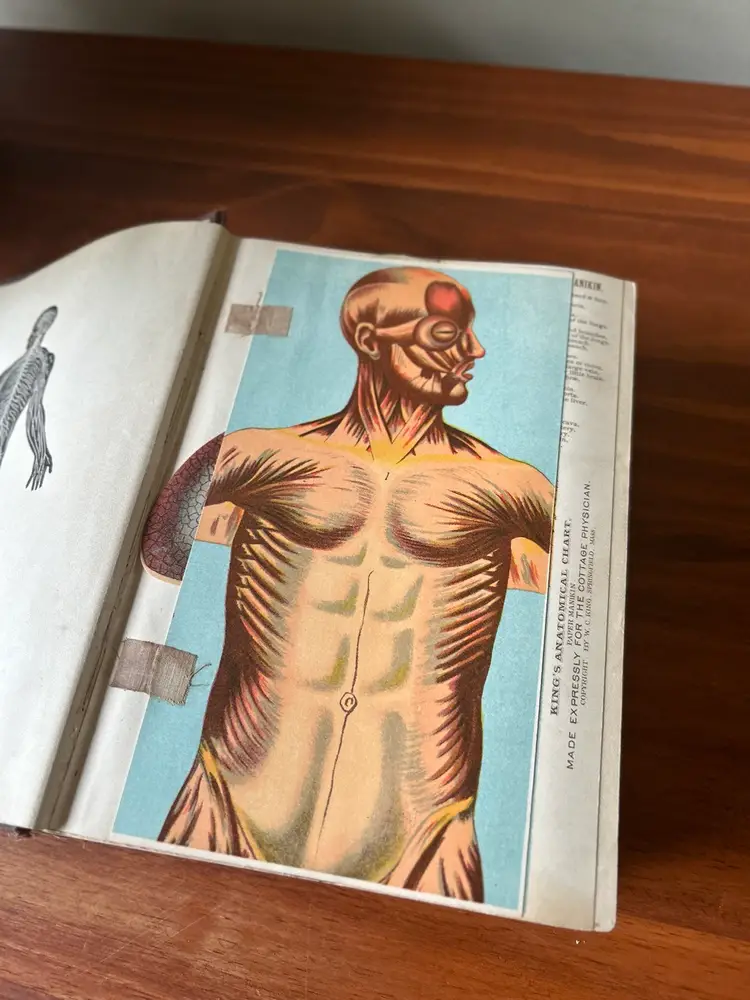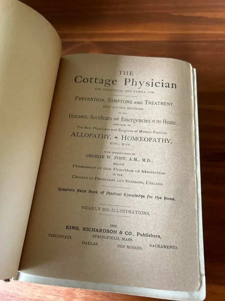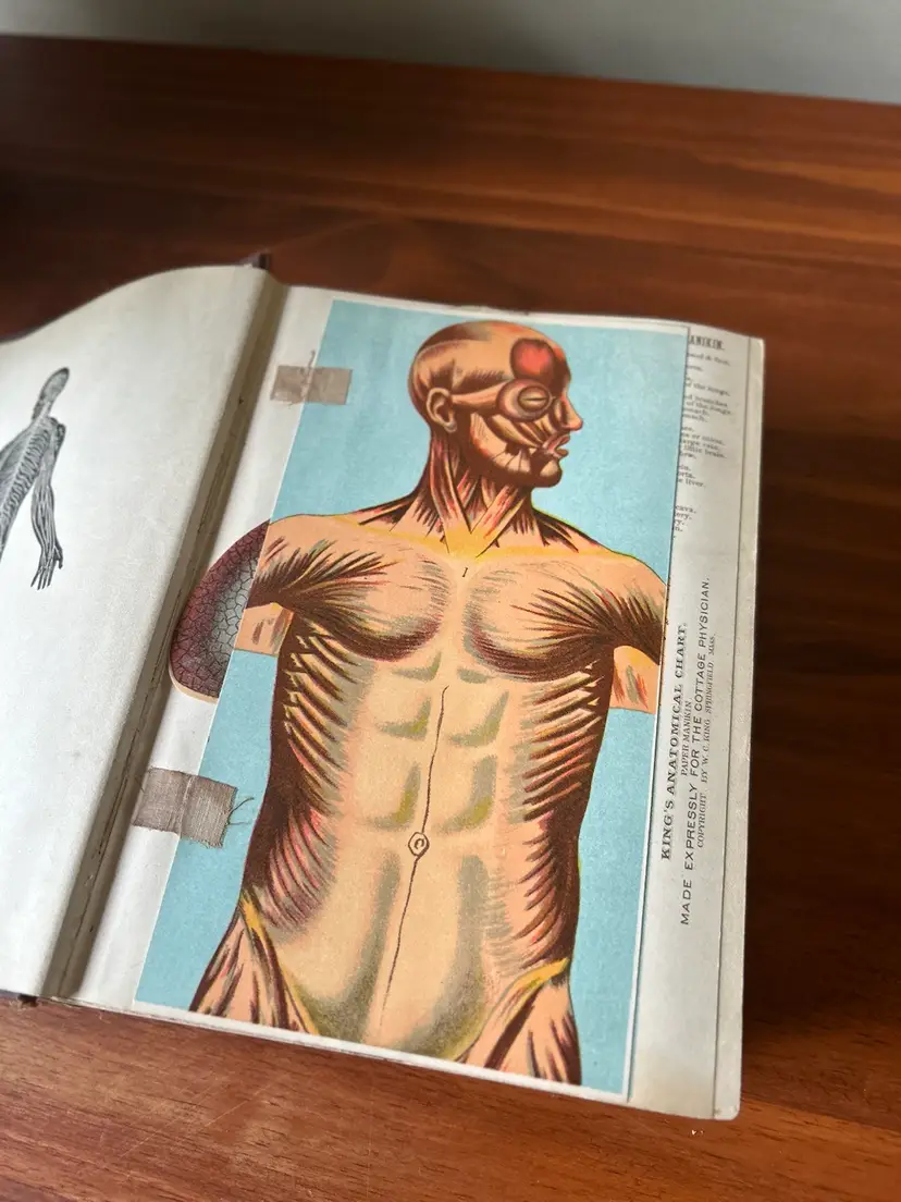 Antique 1895 “The Cottage Physician” home medical book. Cover is in decent condition considering its age. The first few pages of the book are loose from the binding. Color anatomical chart in the front of the book. There are some interesting thoughts on the human body in this book (ex: excessive menstruation). It is a pretty interesting read.