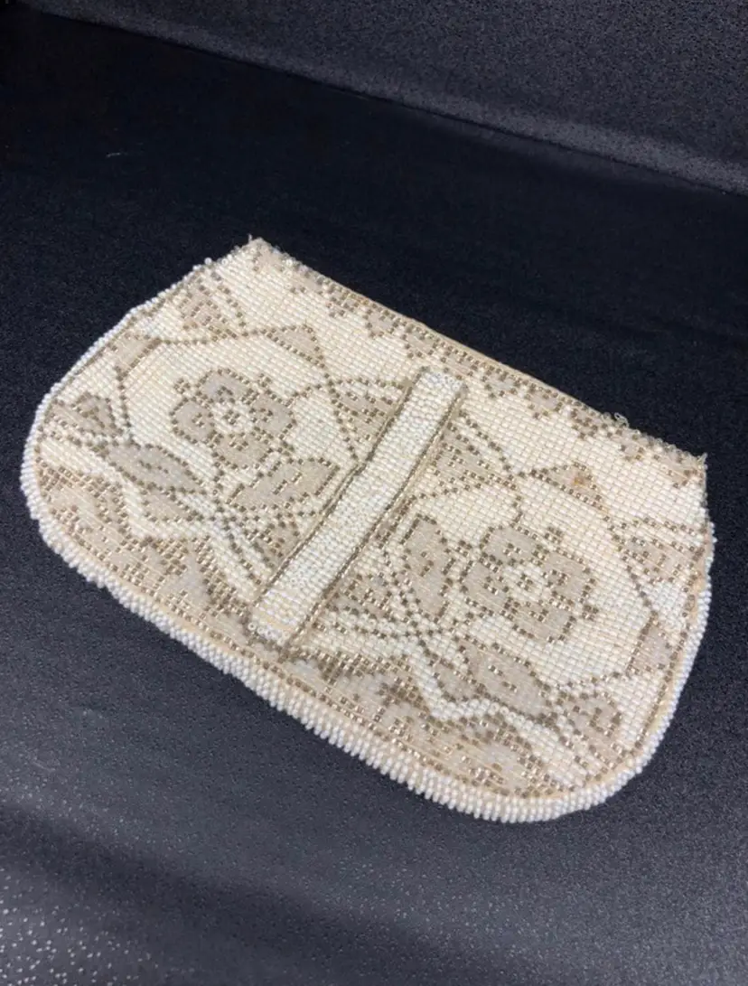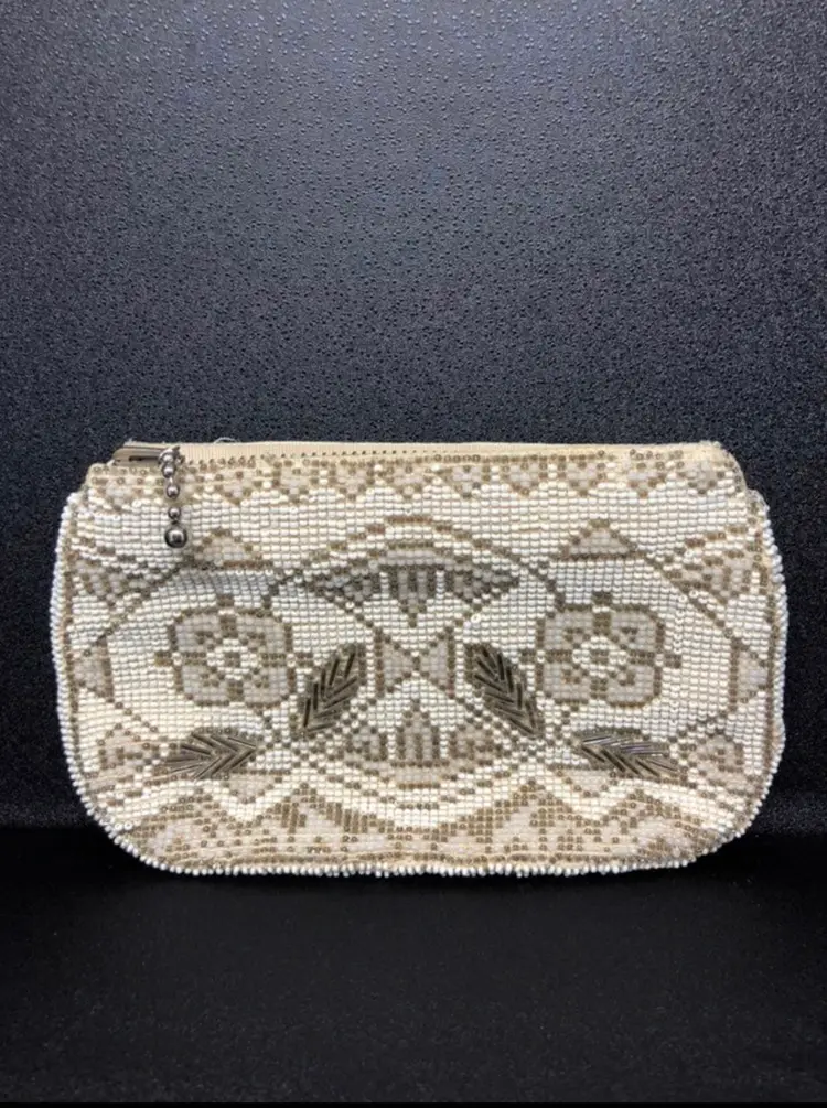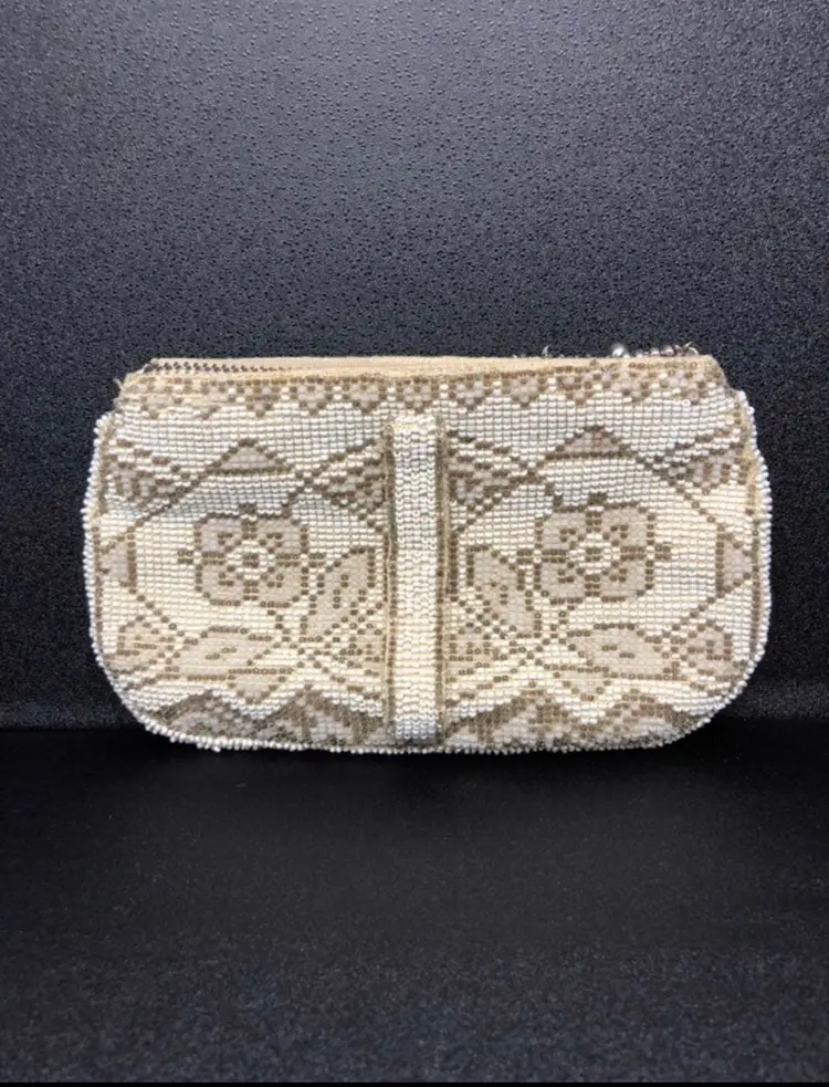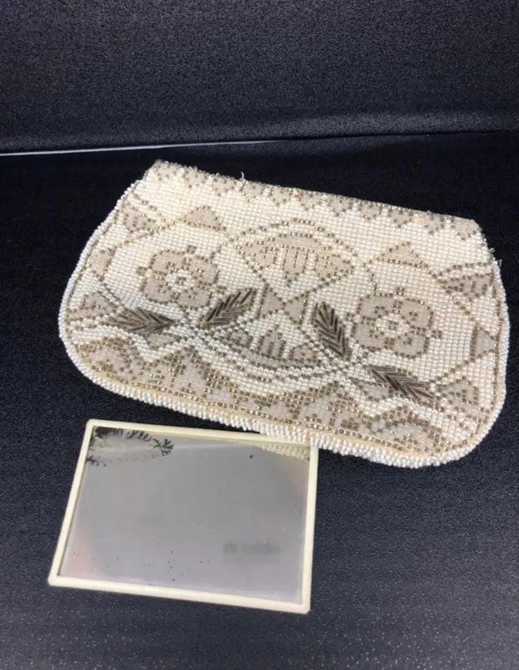 Antique Czechoslovakia / Czech Micro Beaded Wallet / Clutch with Mirror