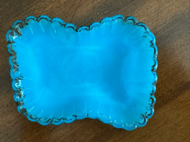 Antique Dithridge blue glass vanity or dresser tray, trinket tray
