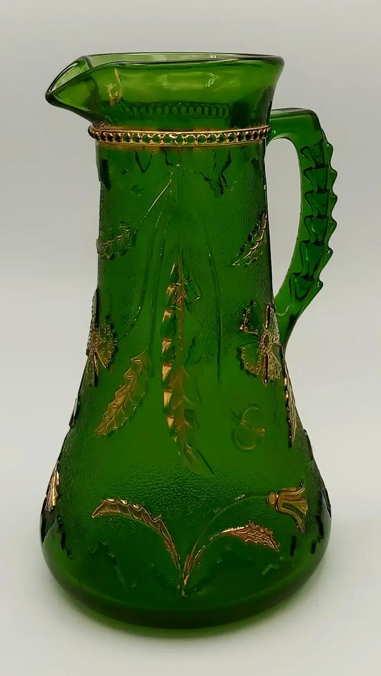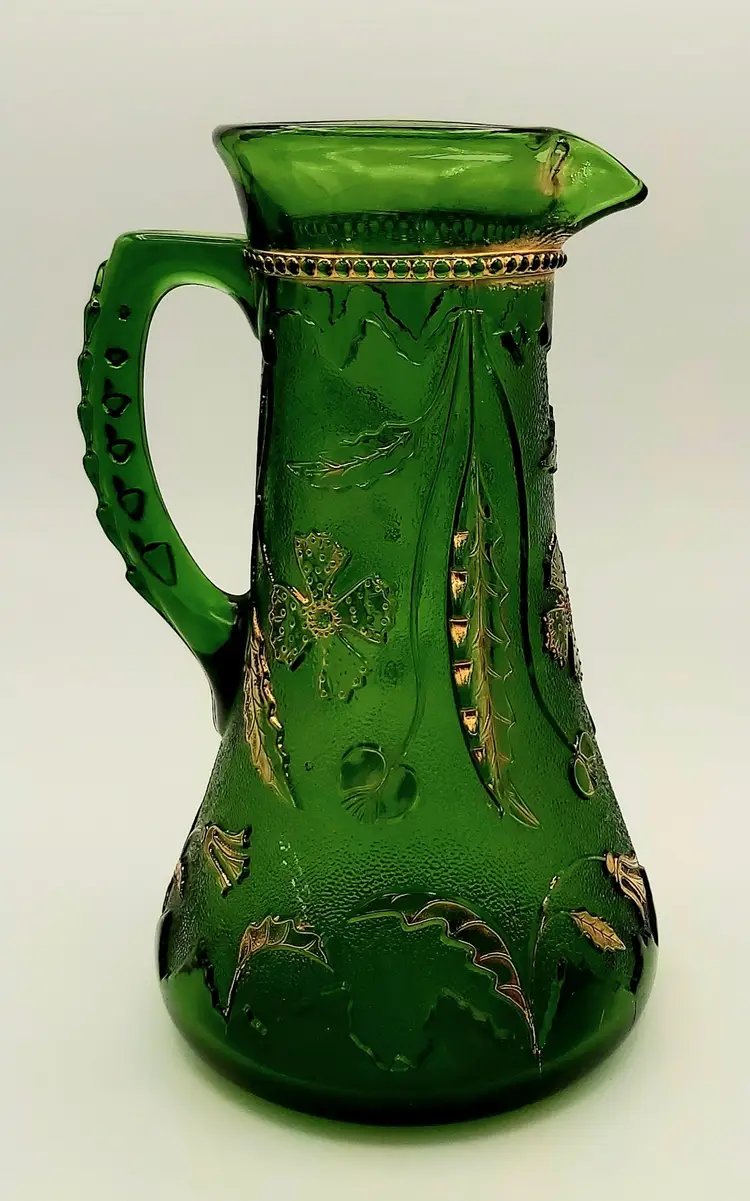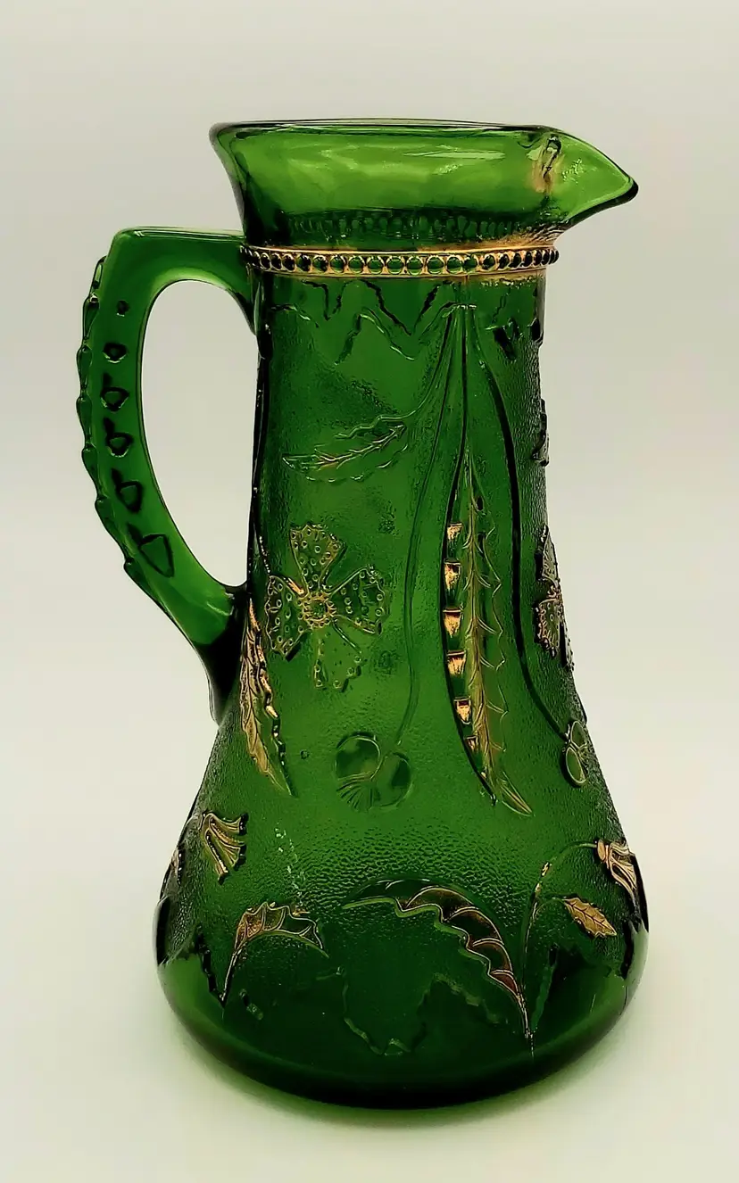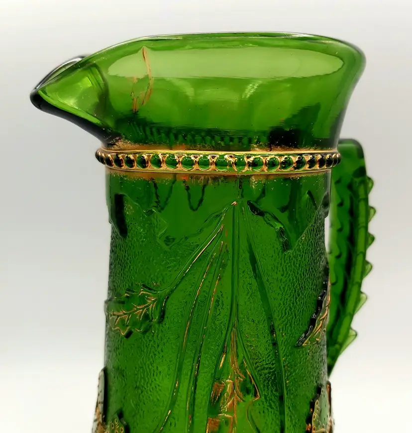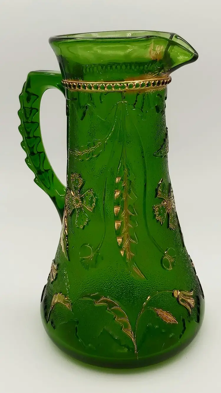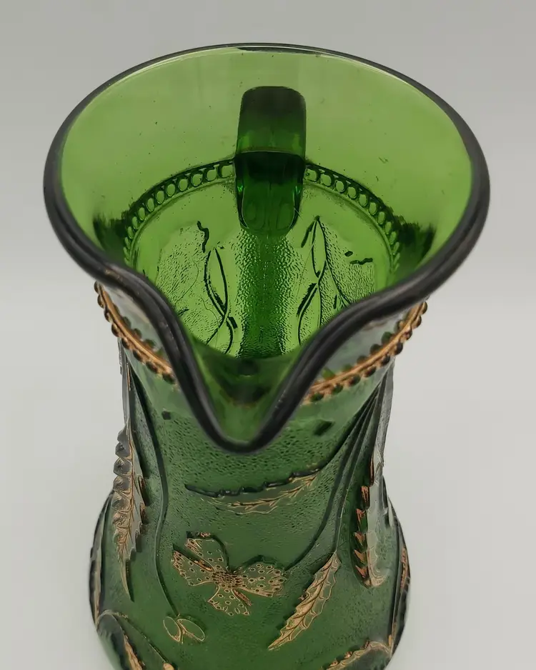 Excellent Used Condition. No chips or cracks. Slight wear on gold. See pictures for details. Measures approx. 9.5" high x 5.5" wide x 6.5" long including handle. Holds 38 - 40oz. Beautiful antique piece.