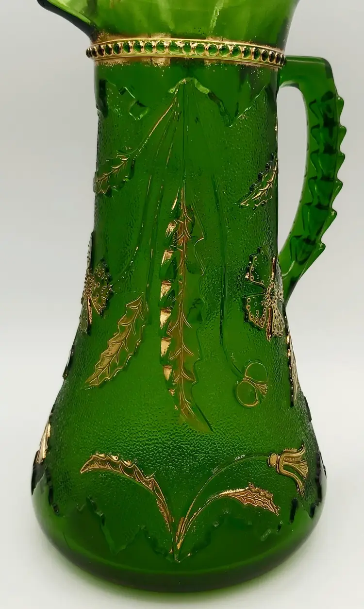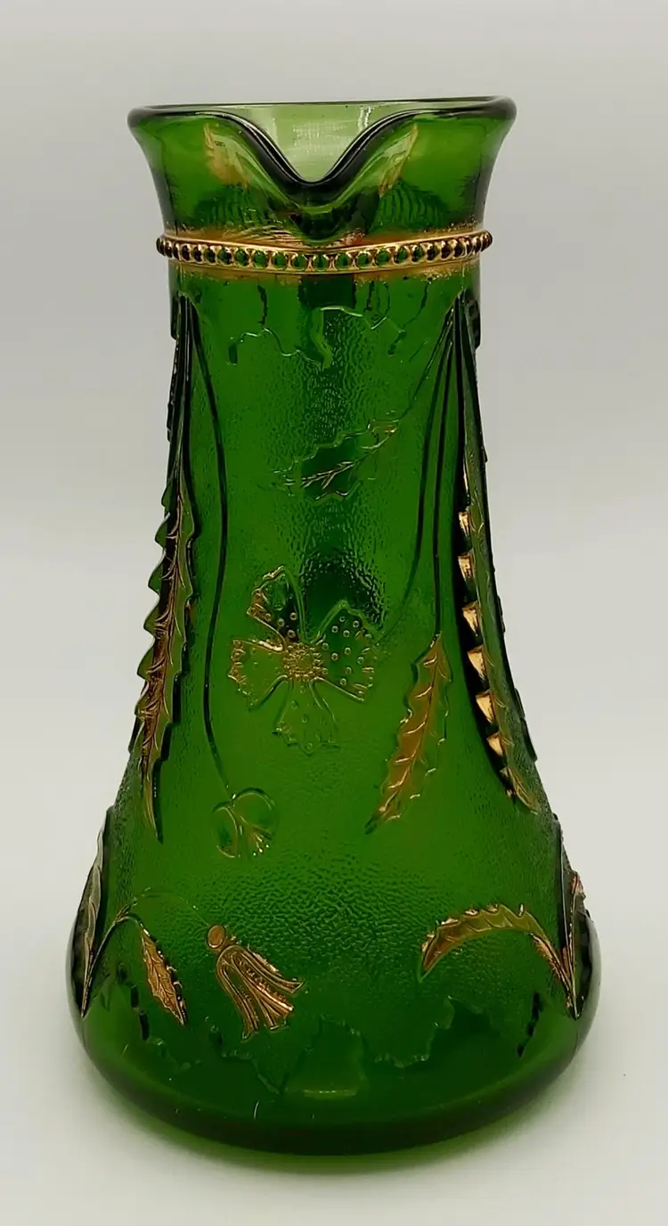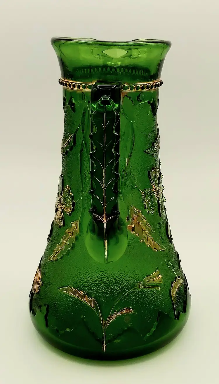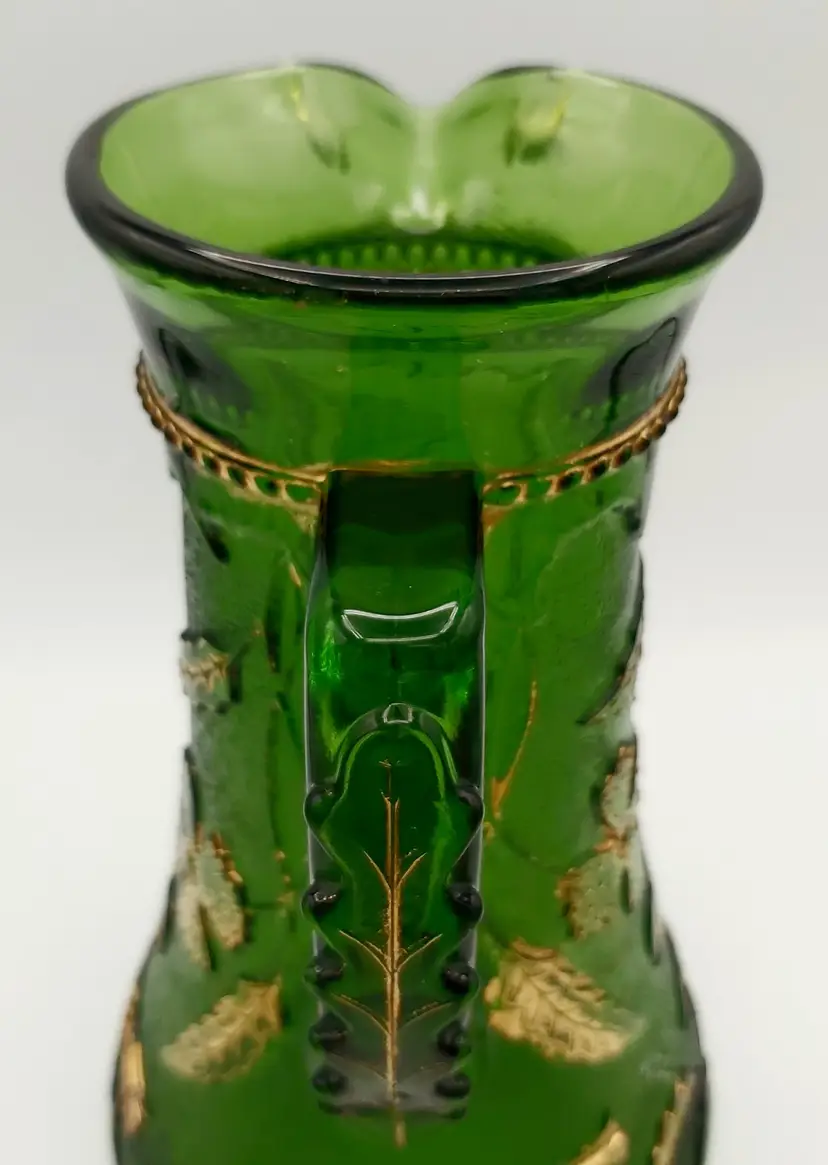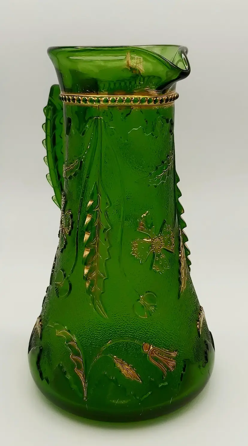 Excellent Used Condition. No chips or cracks. Slight wear on gold. See pictures for details. Measures approx. 9.5" high x 5.5" wide x 6.5" long including handle. Holds 38 - 40oz. Beautiful antique piece.