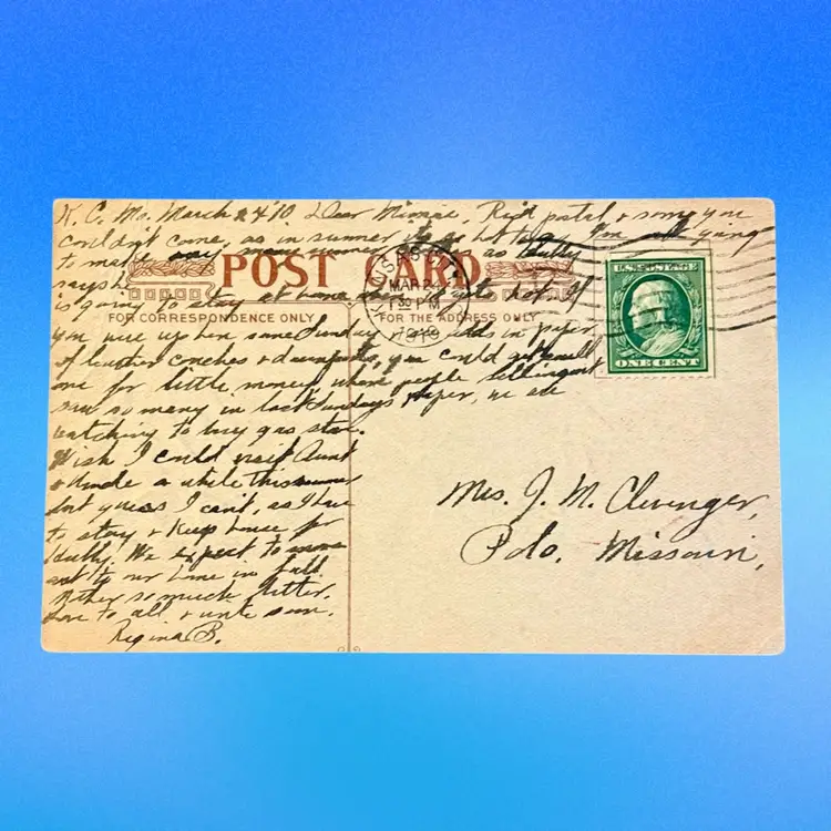 1910 Postmark (Kansas City, MO); good condition.