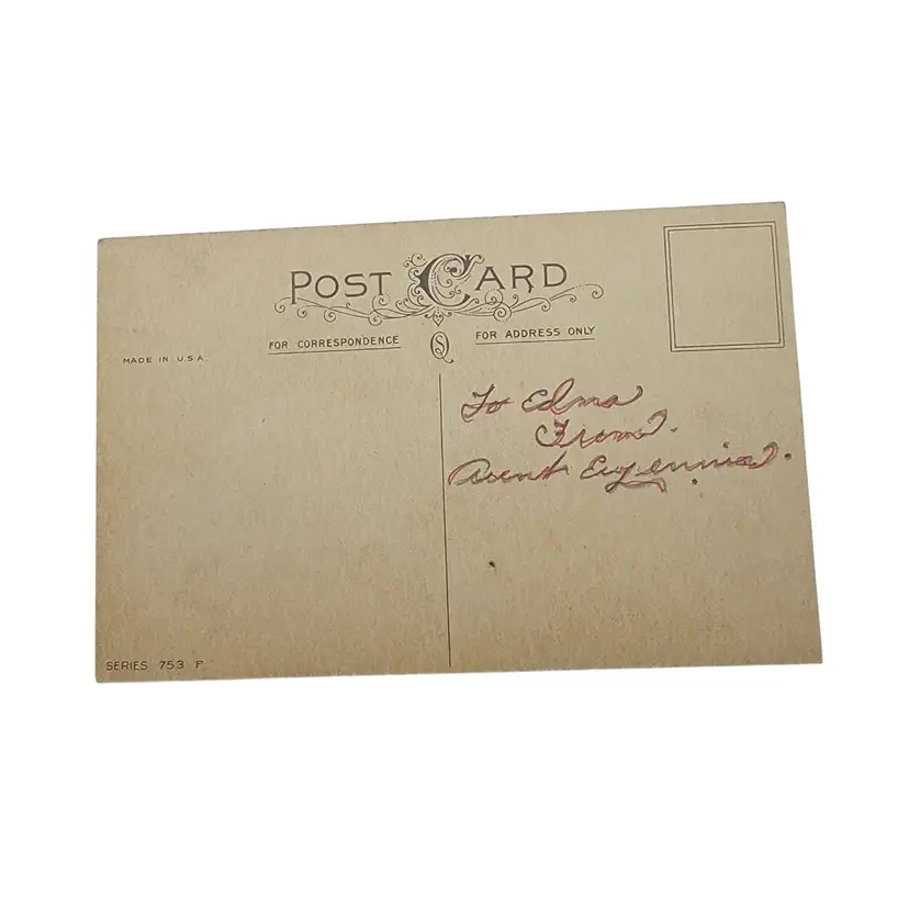 • Standard postcard size • Series 753F marked on the back • Made in USA with handwritten note • Features vivid pastel artwork