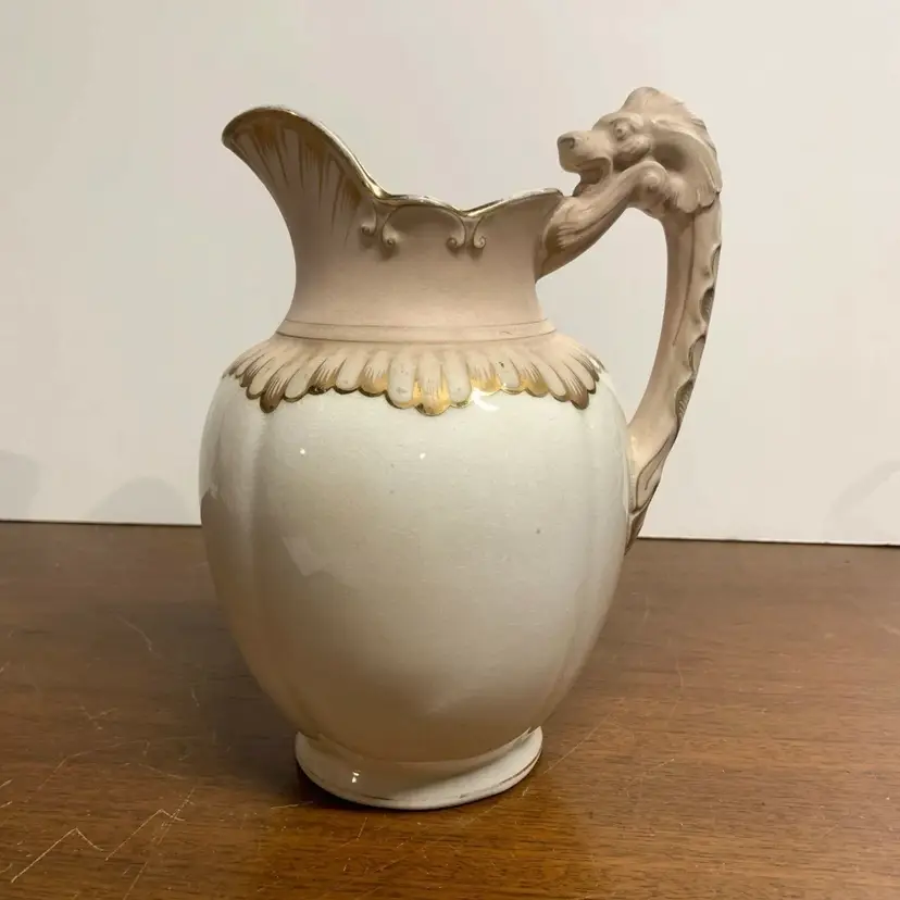 Here We Have a Antique Edwin Bennett Pottery Company Lions Head Pitcher