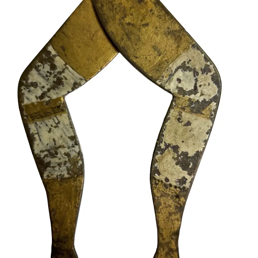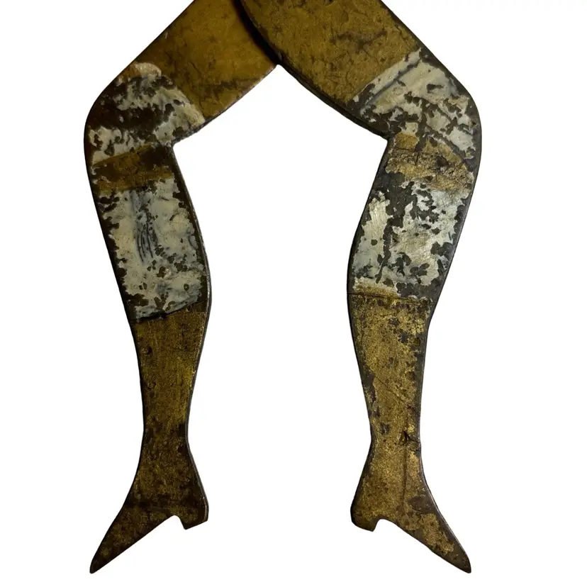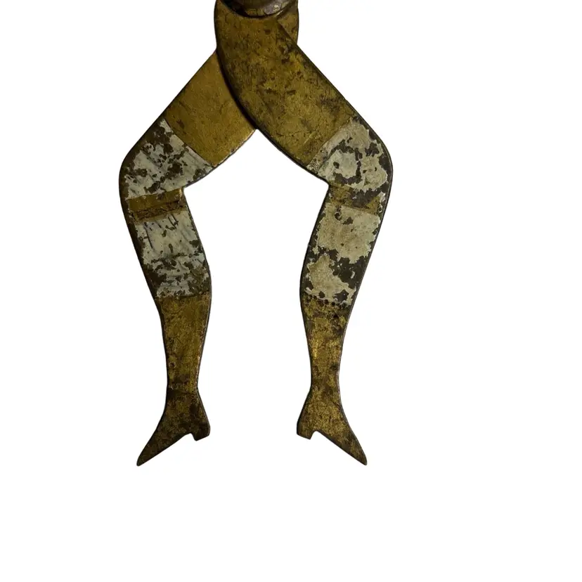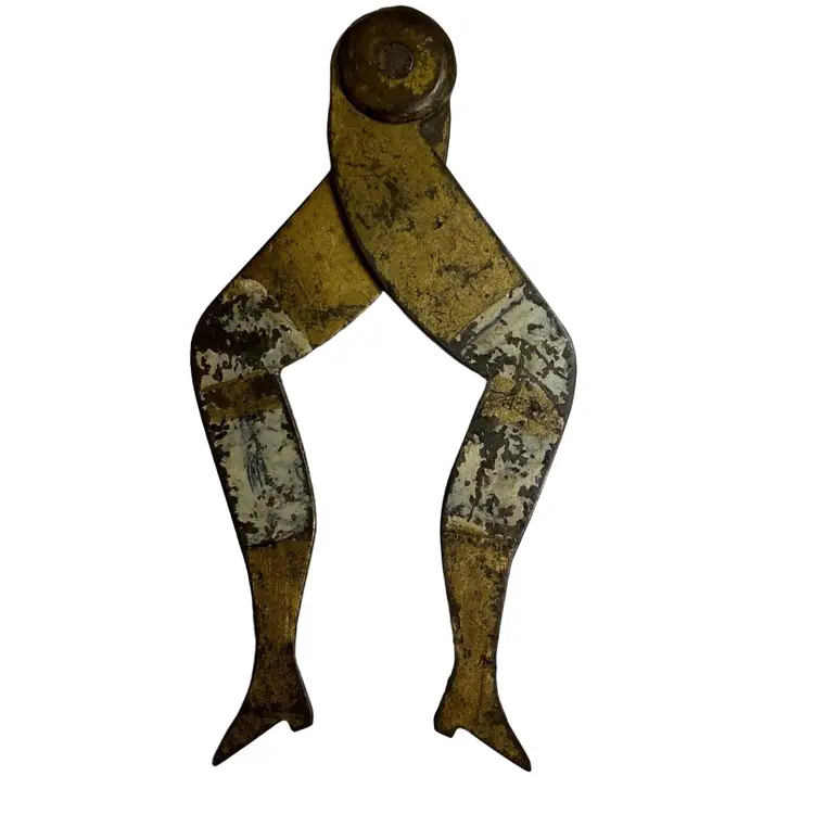 This antique figural caliper is a must-have for collectors and woodworking enthusiasts alike. Made in the United States, this vintage original piece features a woman's legs with boots and stockings, and a brass base. Perfect for measuring and drawing straight lines, this caliper is a great addition to any tool collection.