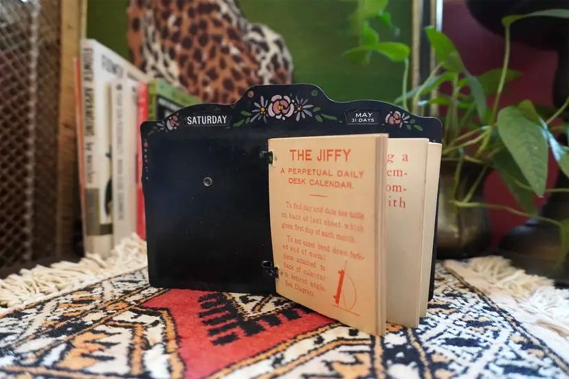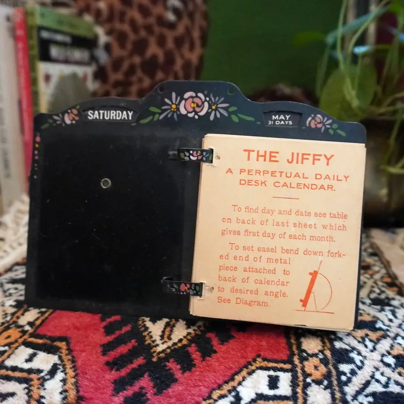 Antique Floral Desk Calendar | Vintage 1950s 1940s The Jiffy Perpetual Daily Desk Calendar | 1950s Desk Decor | Daily Desk Calendar