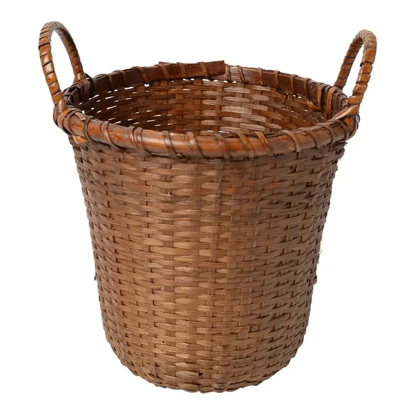 Charming Antique French Wicker Basket with handles, 9” with the handles. Lovely addition to your Boho, Cottage or French Country decor. Wonderful catch all or accessory for any room of your cozy home. Would look lovely filled with wild flowers.