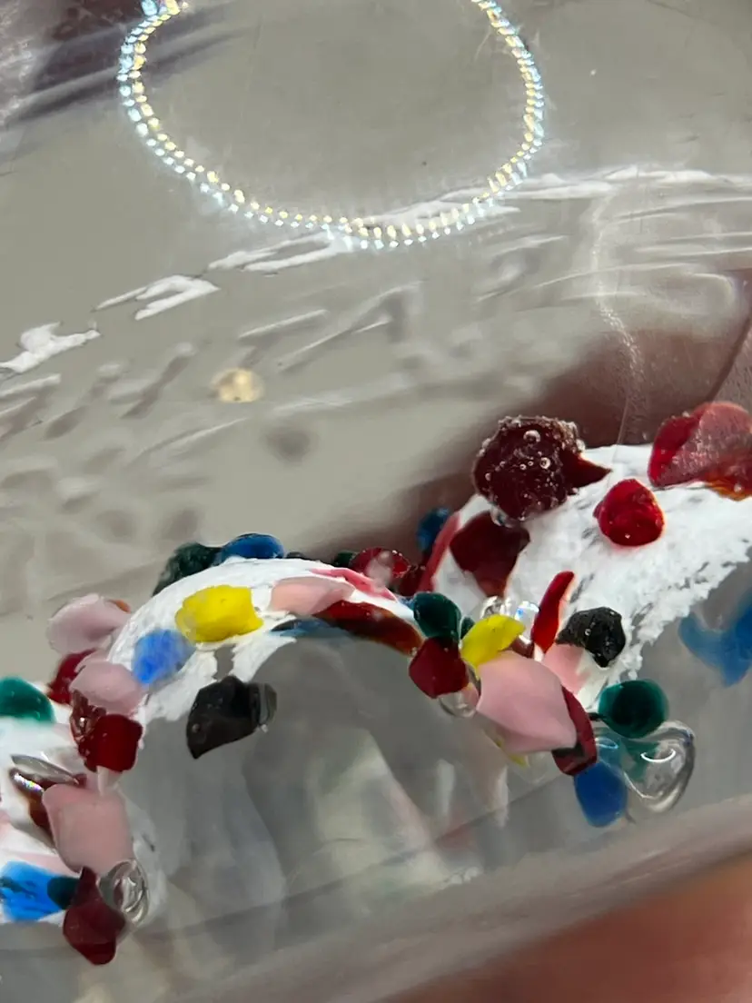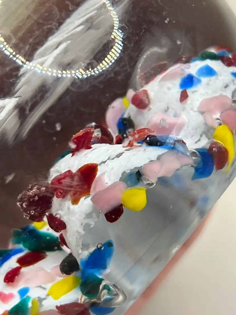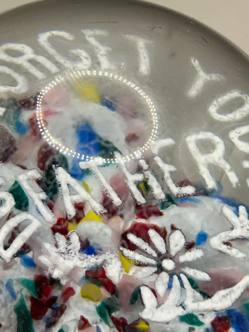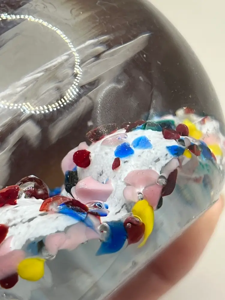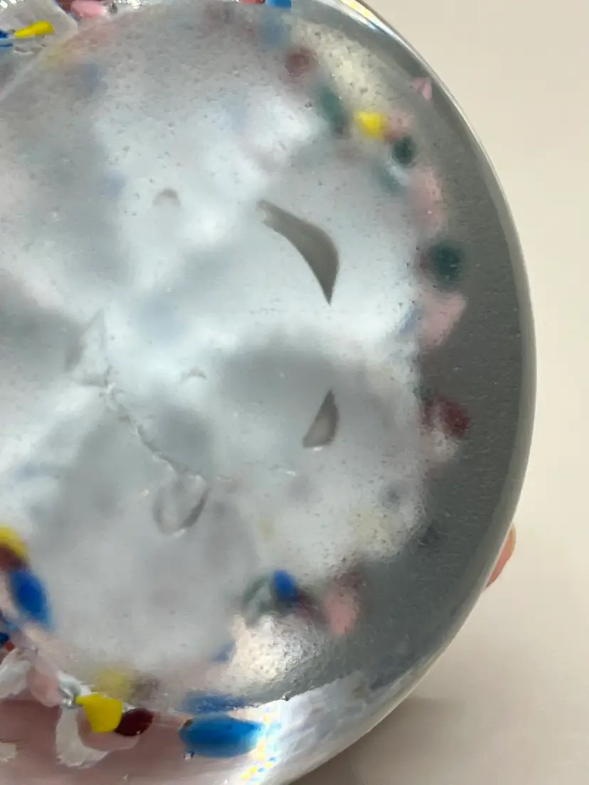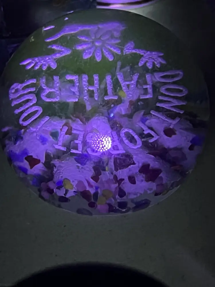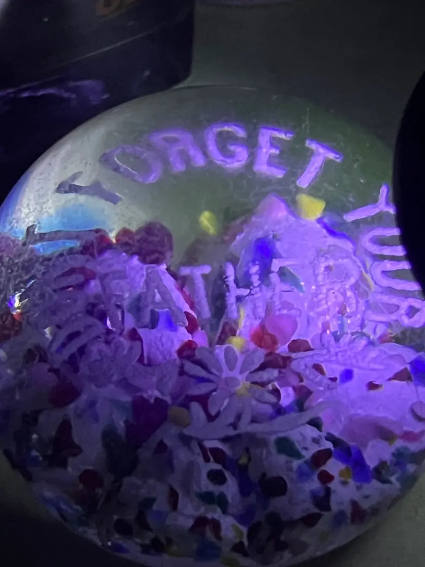 No chips. Has scratches and small scuffs. Glows green under blacklight! Please see all pictures!