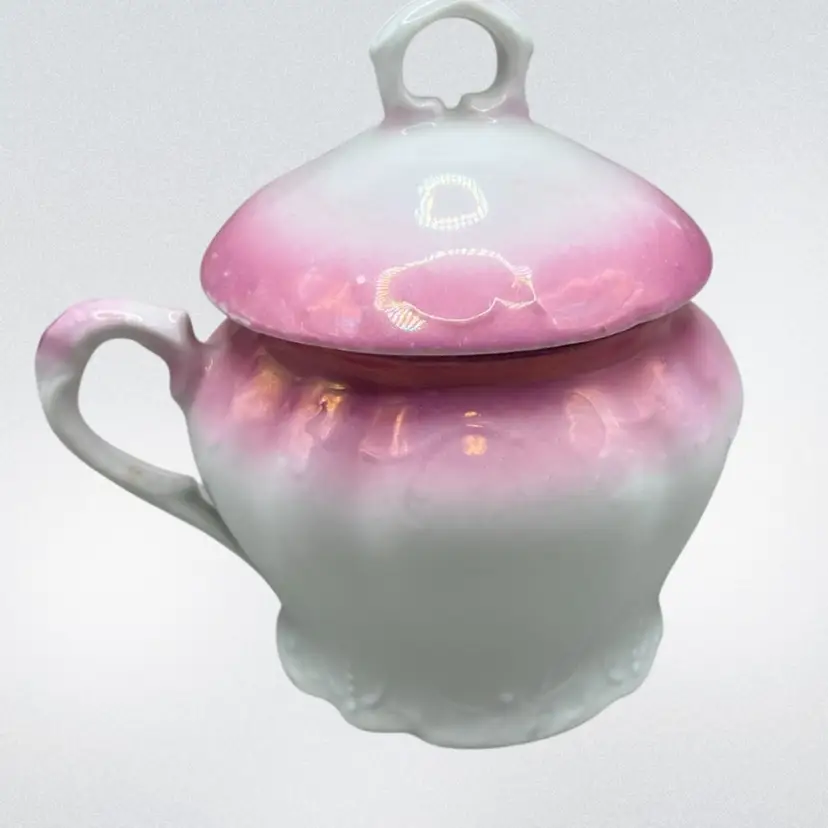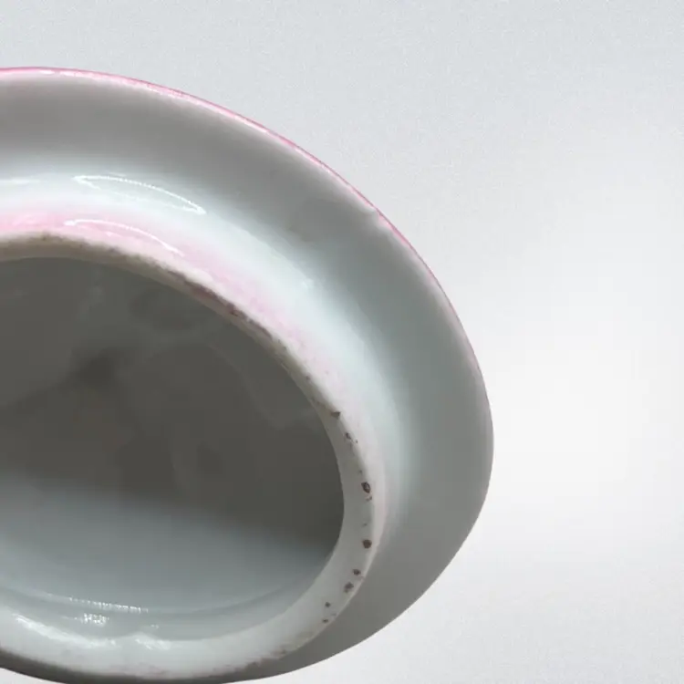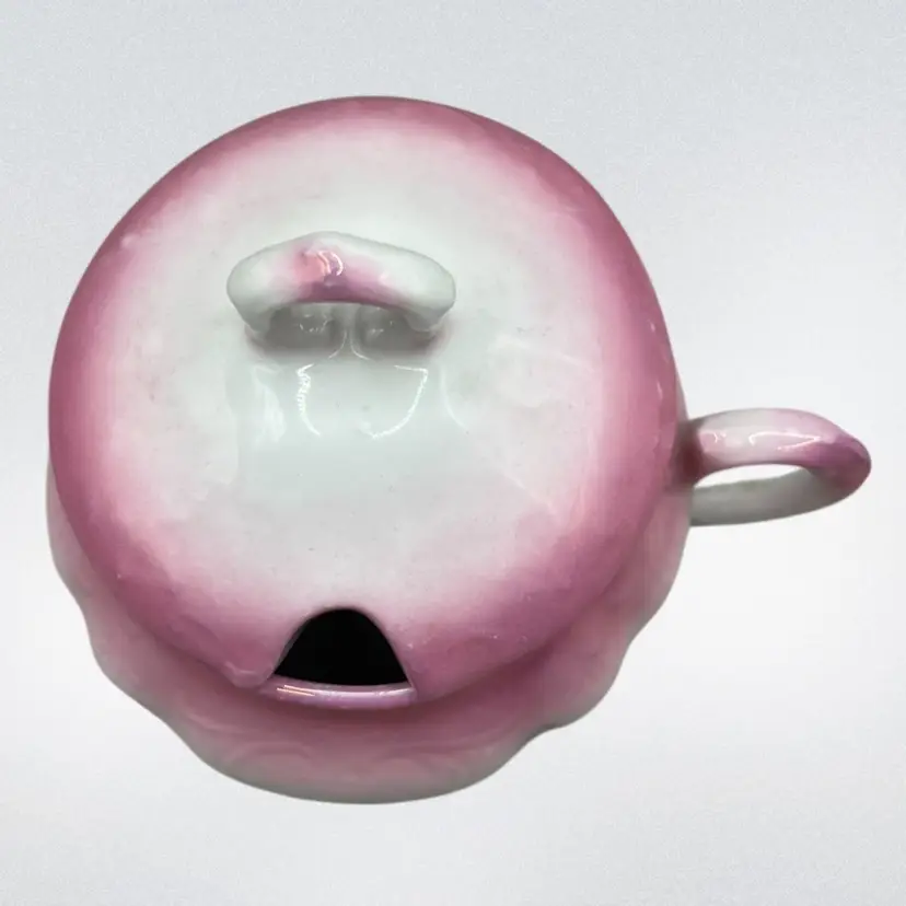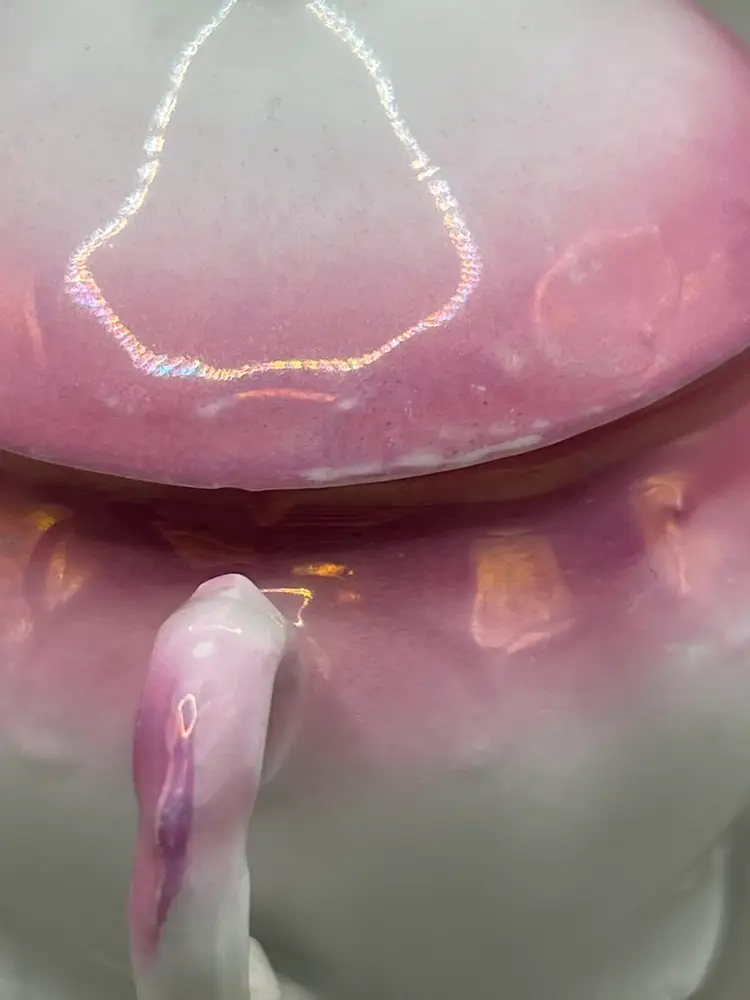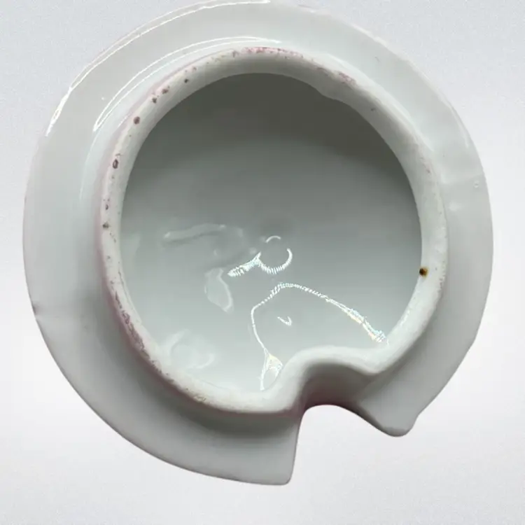 No chips. The underside of the lid looks like it has a small chip but it is just a flaw in the ceramic. There is some paint wear on the pink luster. Please see all pictures!