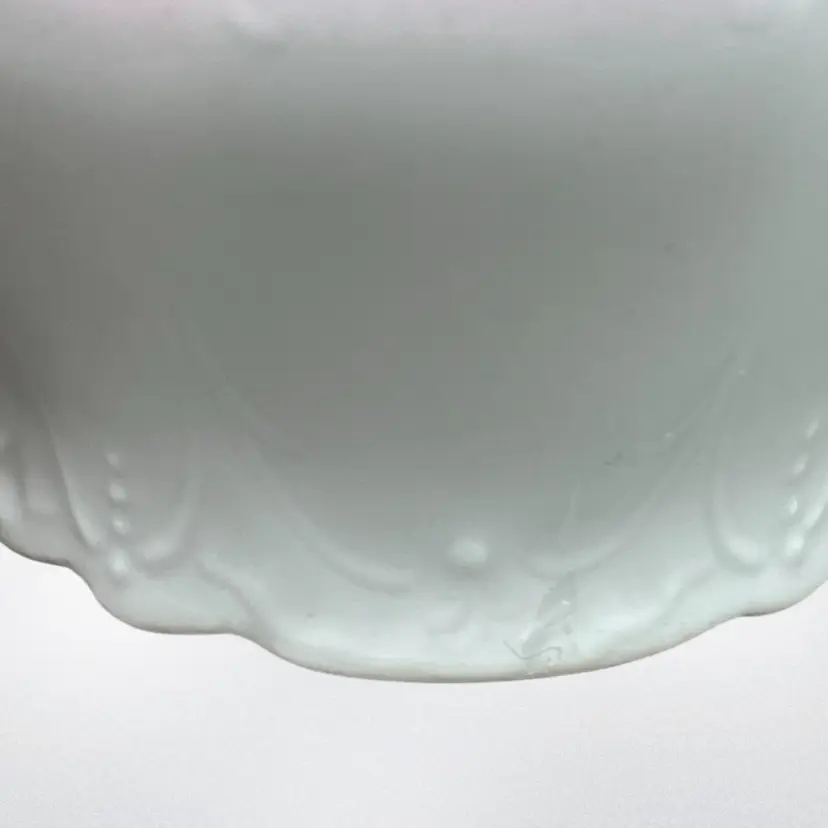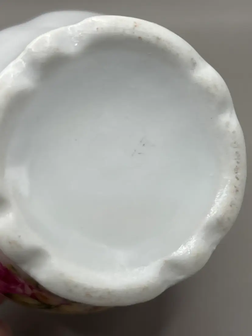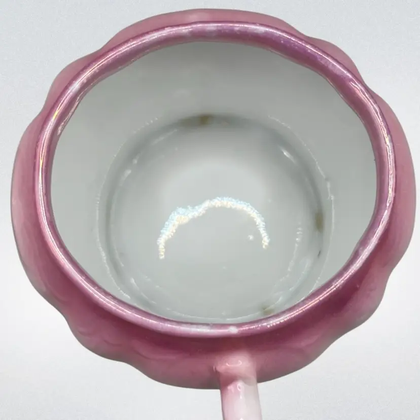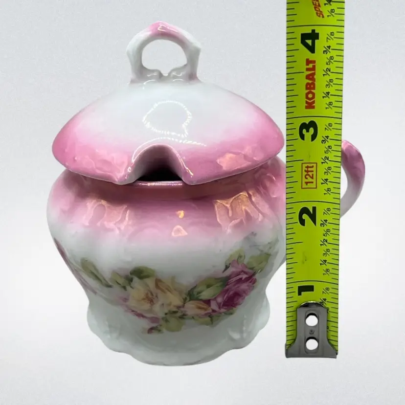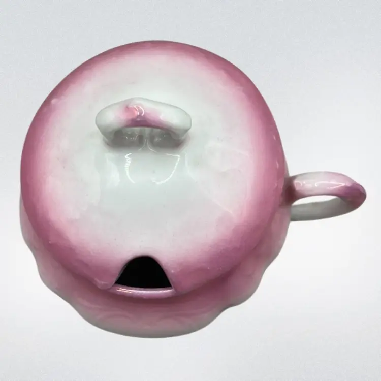 No chips. The underside of the lid looks like it has a small chip but it is just a flaw in the ceramic. There is some paint wear on the pink luster. Please see all pictures!