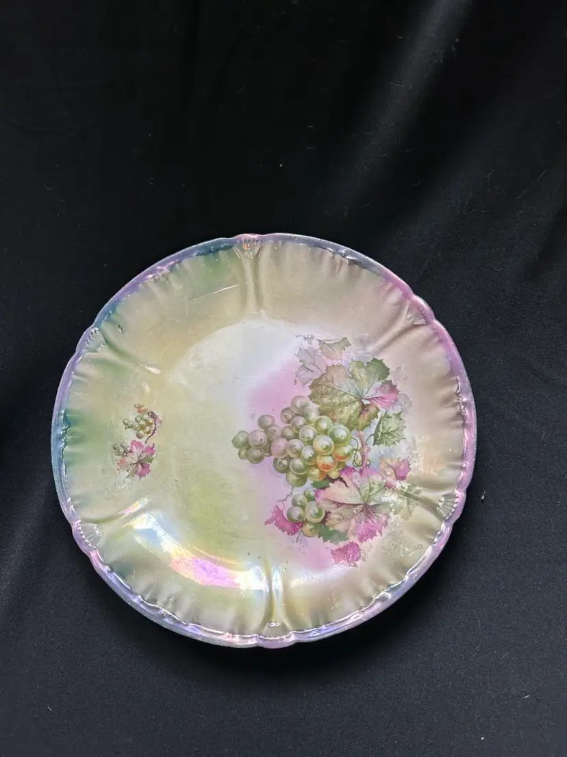 Iridescent lustreware finish. Grape design. 8 1/4” across no chips or cracks.