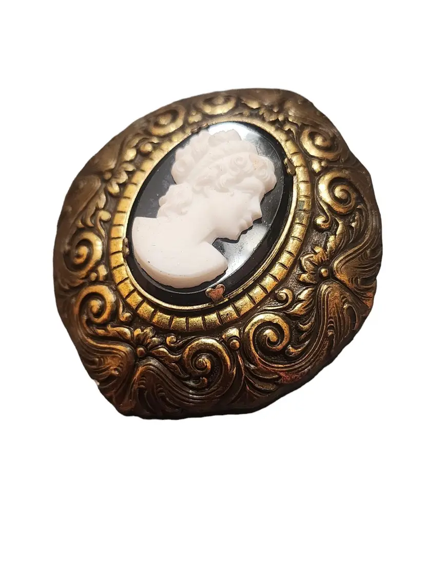 Antique Glass Cameo & Raised Relief Brass Fur Clip (A3583)